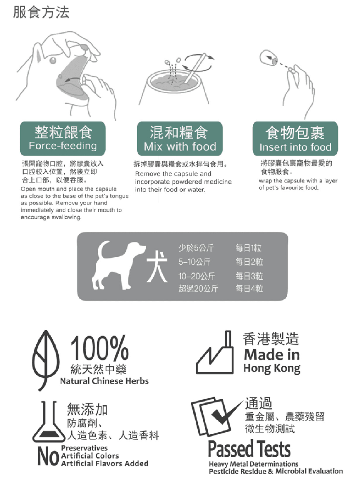 *建議拆掉膠囊與糧食或水拌勻食用。如要長期服用,建議先諮詢註冊獸醫意見。