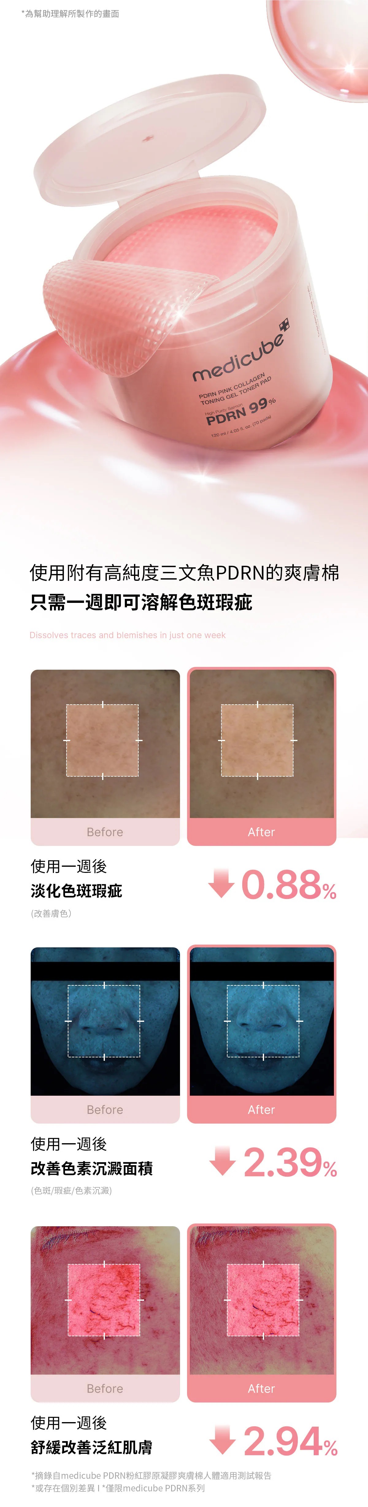 - 使用時若出現紅腫、發癢、刺激或其他異常症狀,請立即停止使用並諮詢皮膚科醫生。