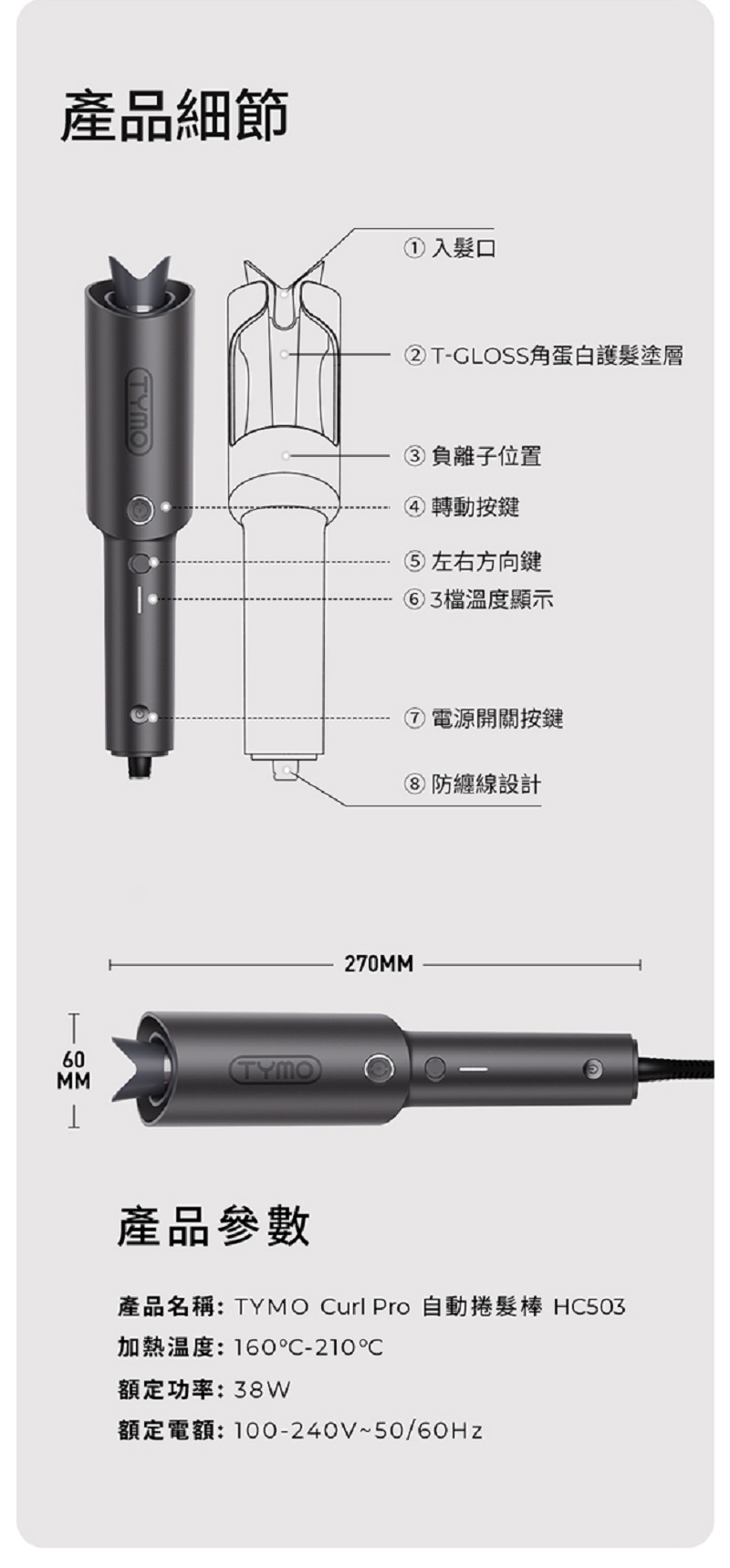 - 產品名稱︰TYMO CurlPro自動捲髮棒