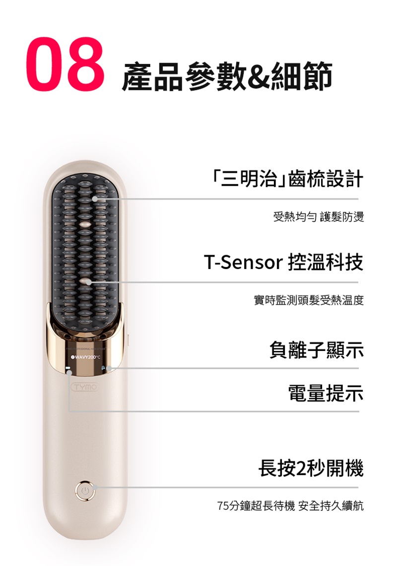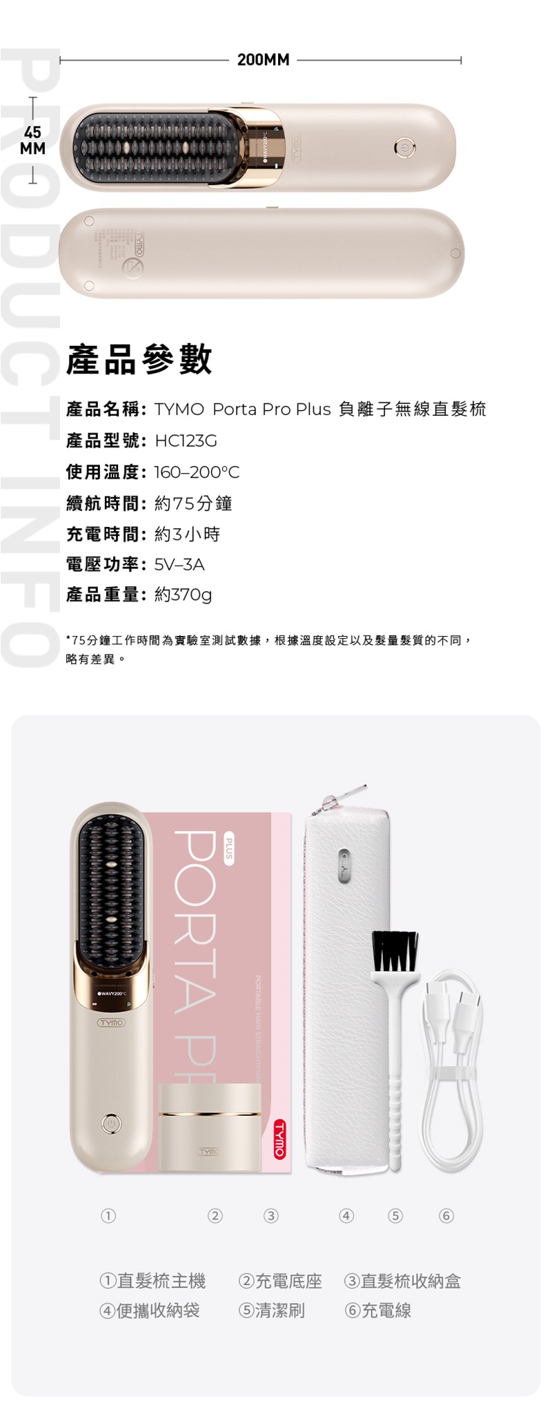 - 產品名稱︰TYMO Porta Pro Plus 負離子無線直髮梳