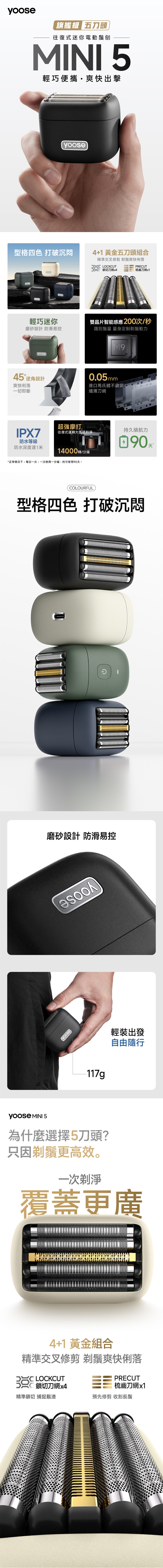 YOOSE - Mini 5 往復式五刀頭迷你電動鬚刨 [多種顏色]