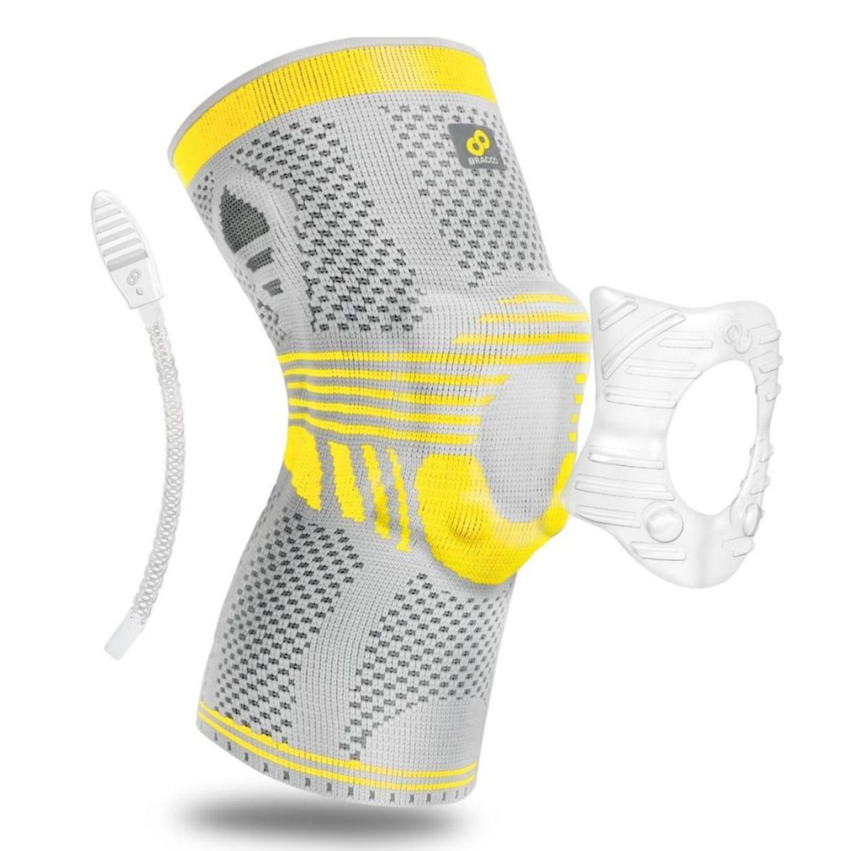 區塊性的編織設計, 髕骨加壓固定支撐, 並放鬆股四頭肌、小腿肚區域提供減壓,後膝窩則是柔軟而透氣。