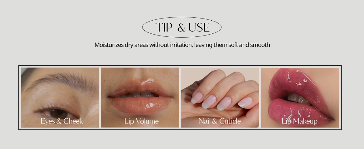 - 柔潤質地:輕盈不黏膩,塗抹後即刻舒緩乾燥。