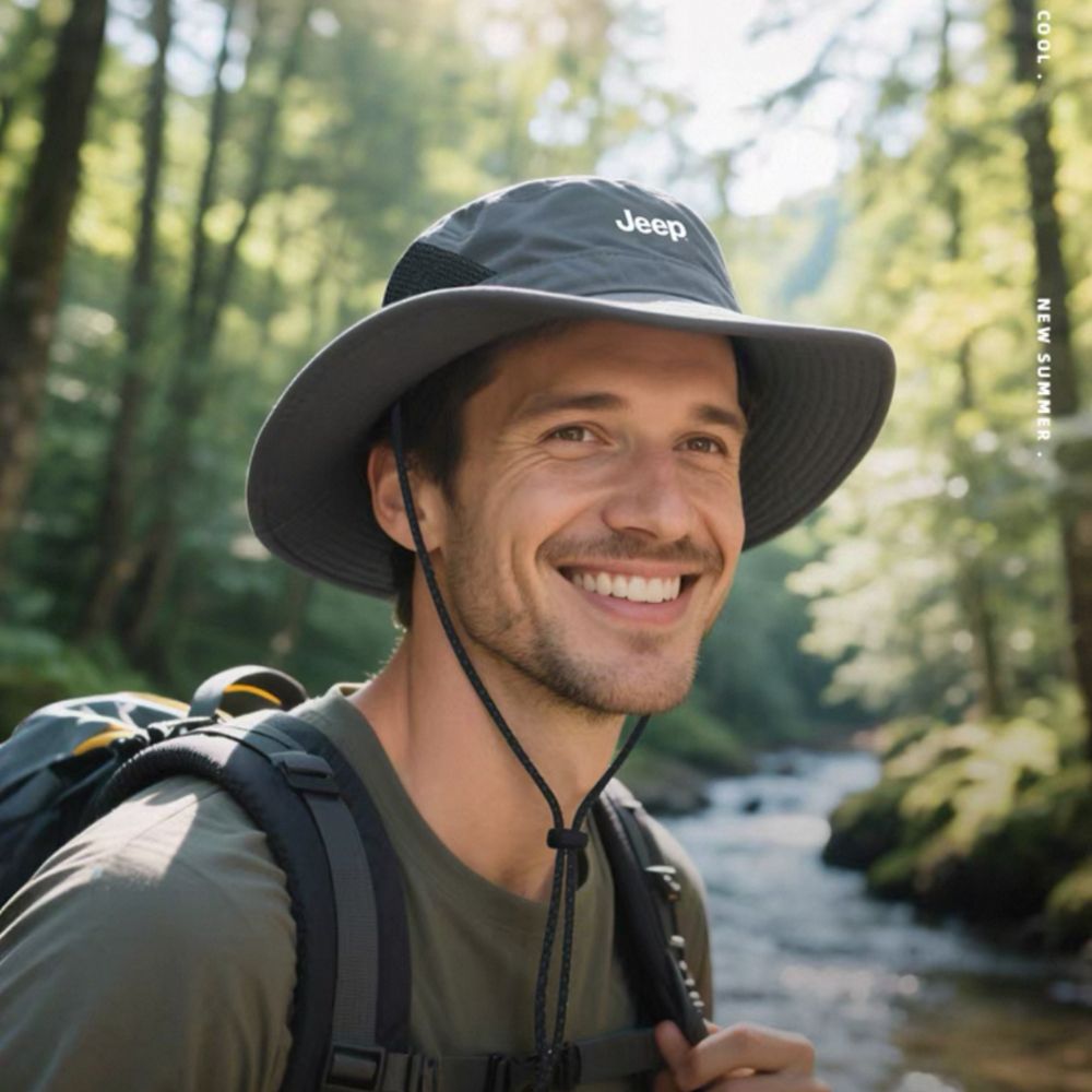 Jeep速乾防曬漁夫帽UPF50+專為戶外活動而設計,提供高效防曬與舒適佩戴體驗。帽子具 UPF50+防曬等級,可有效阻擋99%以上紫外線,適合遠足、露營、釣魚及各類戶外活動。產品採用 輕量速乾面料,並搭配 網孔透氣設計,提升通風效果,讓頭部保持清爽。寬帽檐可提供更大的遮陽範圍,而 可調節下巴繩 可在有風環境中保持帽子穩固。