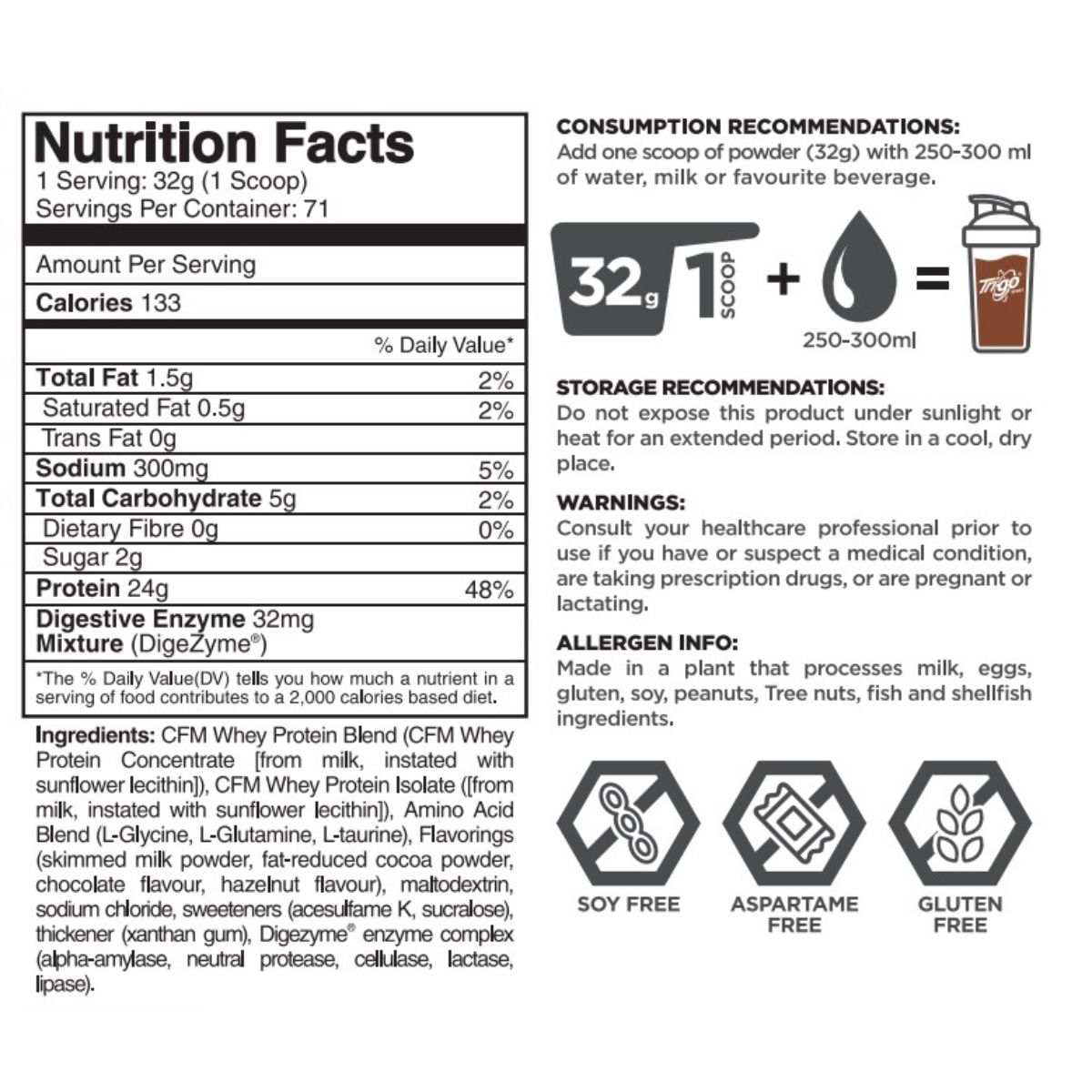 Tri-go - 乳清蛋白粉 5lbs/ 2272g (榛子朱古力味)