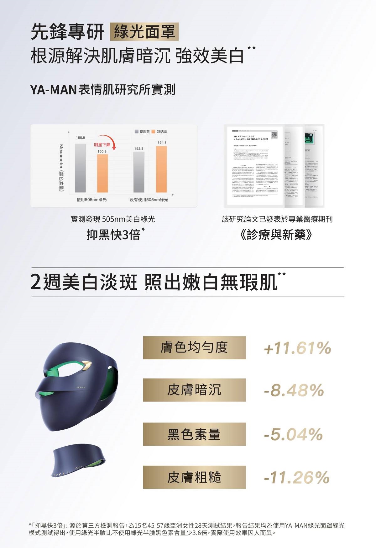 - 專研美白綠光 抑黑快3倍