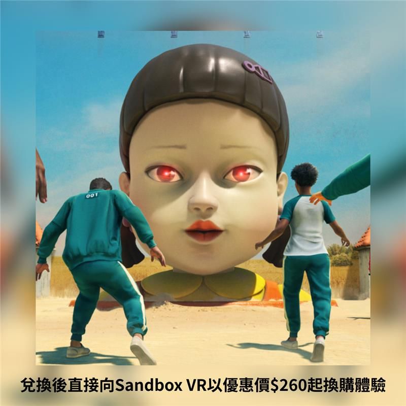 - 1張香港Sandbox VR - 魷魚遊戲:虛擬對決體驗優惠換購券 (星期一至五(非公眾假期)) / 星期六、日及公眾假期)