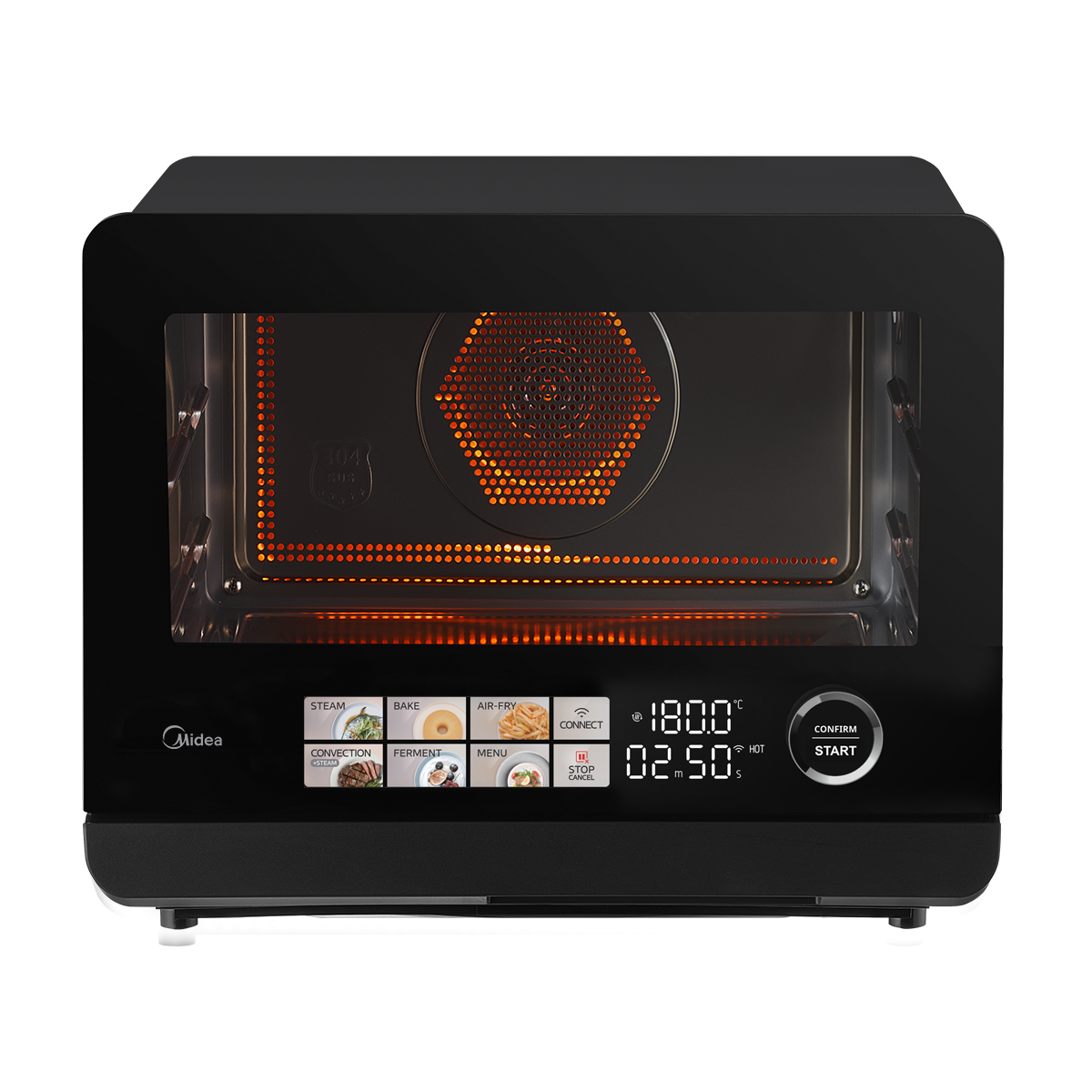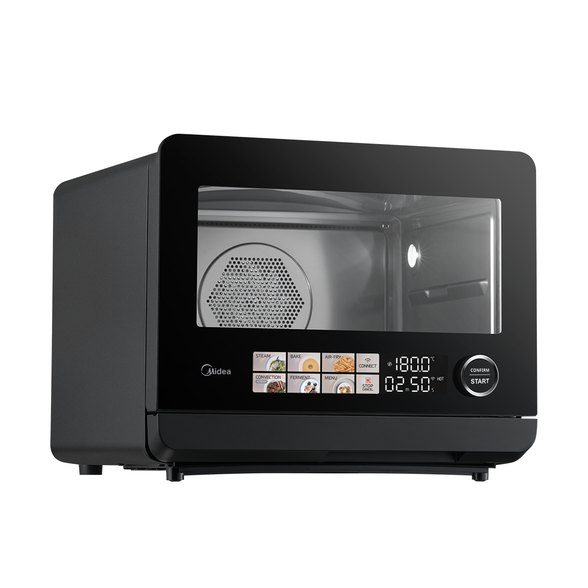 - 8種烹調模式:氣炸 (有預熱)、氣炸 (無預熱)、蒸氣嫩烤 (有預熱)、蒸氣嫩烤 (無預熱)、烘焙(有預熱)、烘焙 (無預熱)、純蒸、發酵