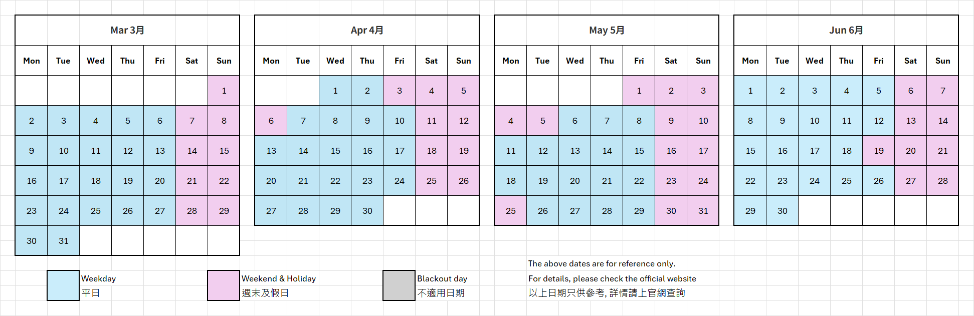 - 預訂此項旅遊服務及套票,旅客必須是香港居民,而非到港旅客。