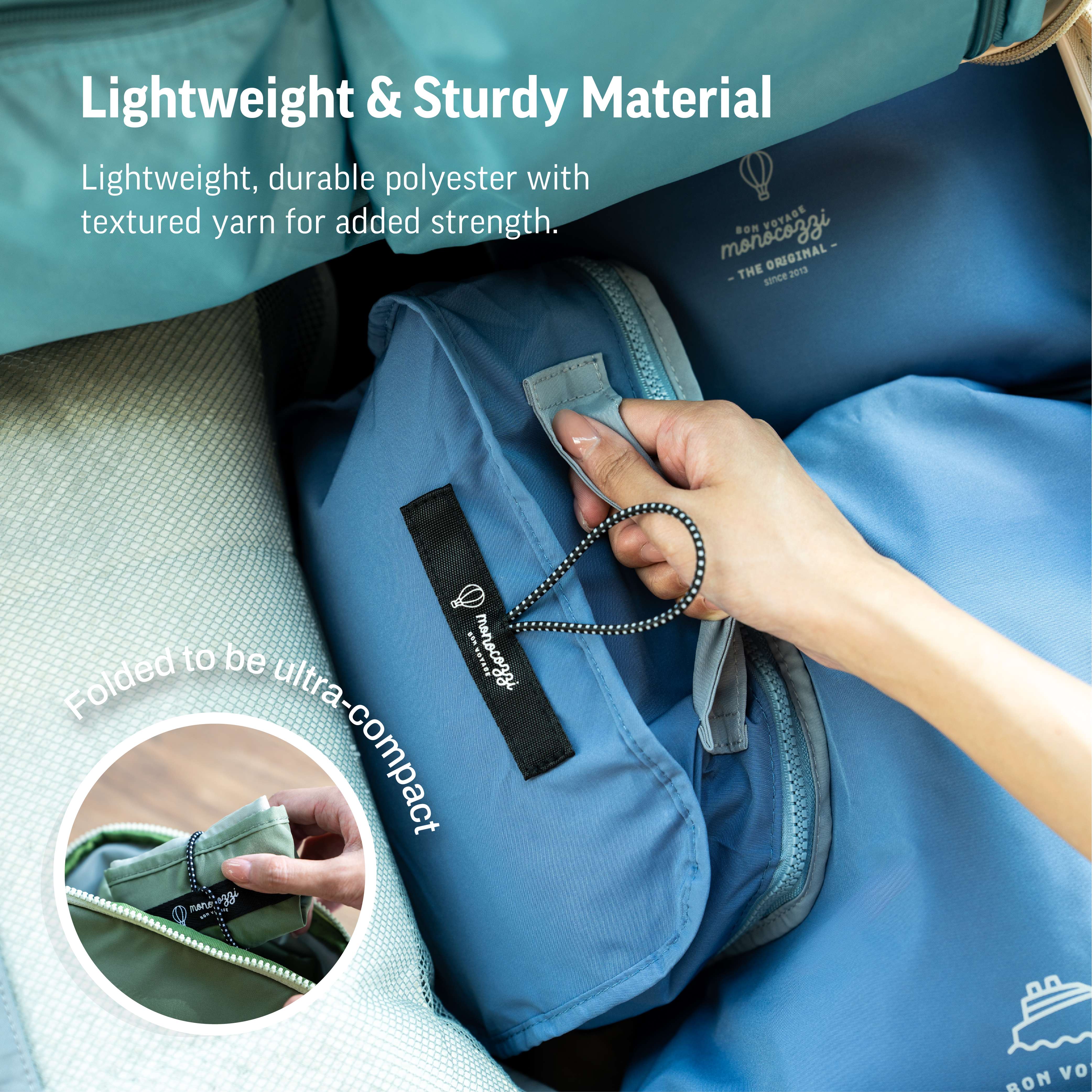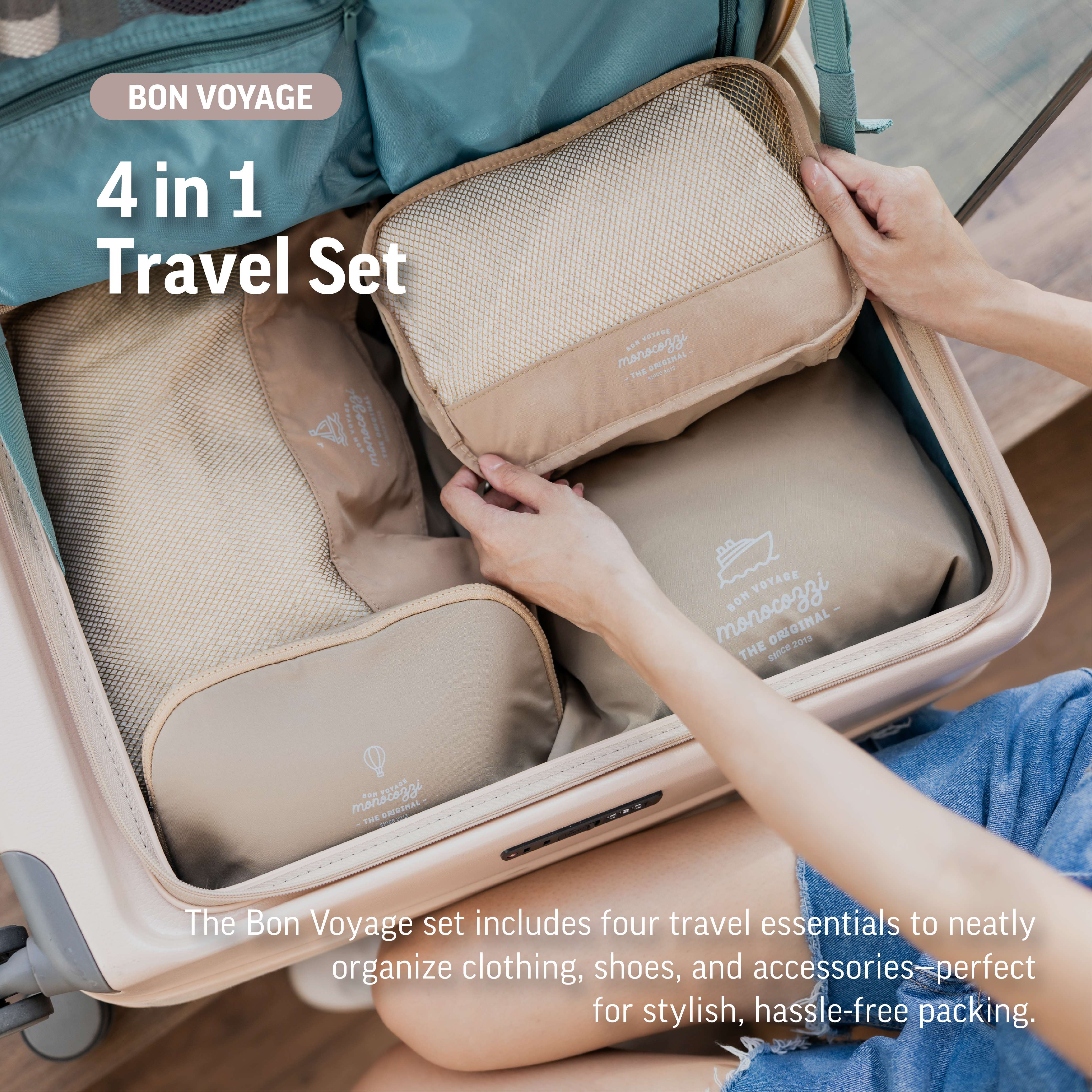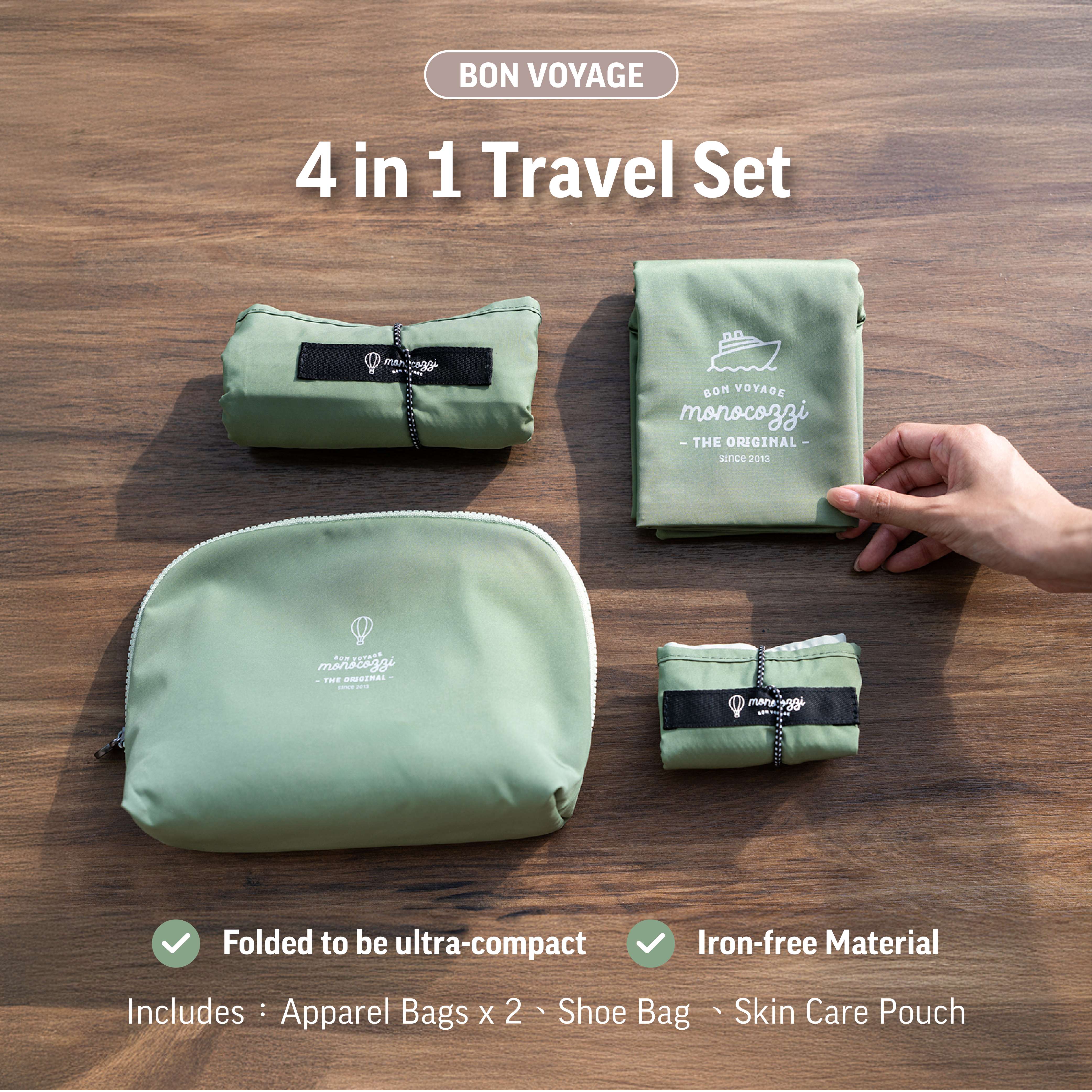 MONOCOZZI - Bon Voyage 摺疊旅行收納袋 4 合 1 套裝(小衣物收納袋,大衣物收納袋,鞋袋,拉鏈小袋)(煙燻綠/駱駝啡/石板藍)