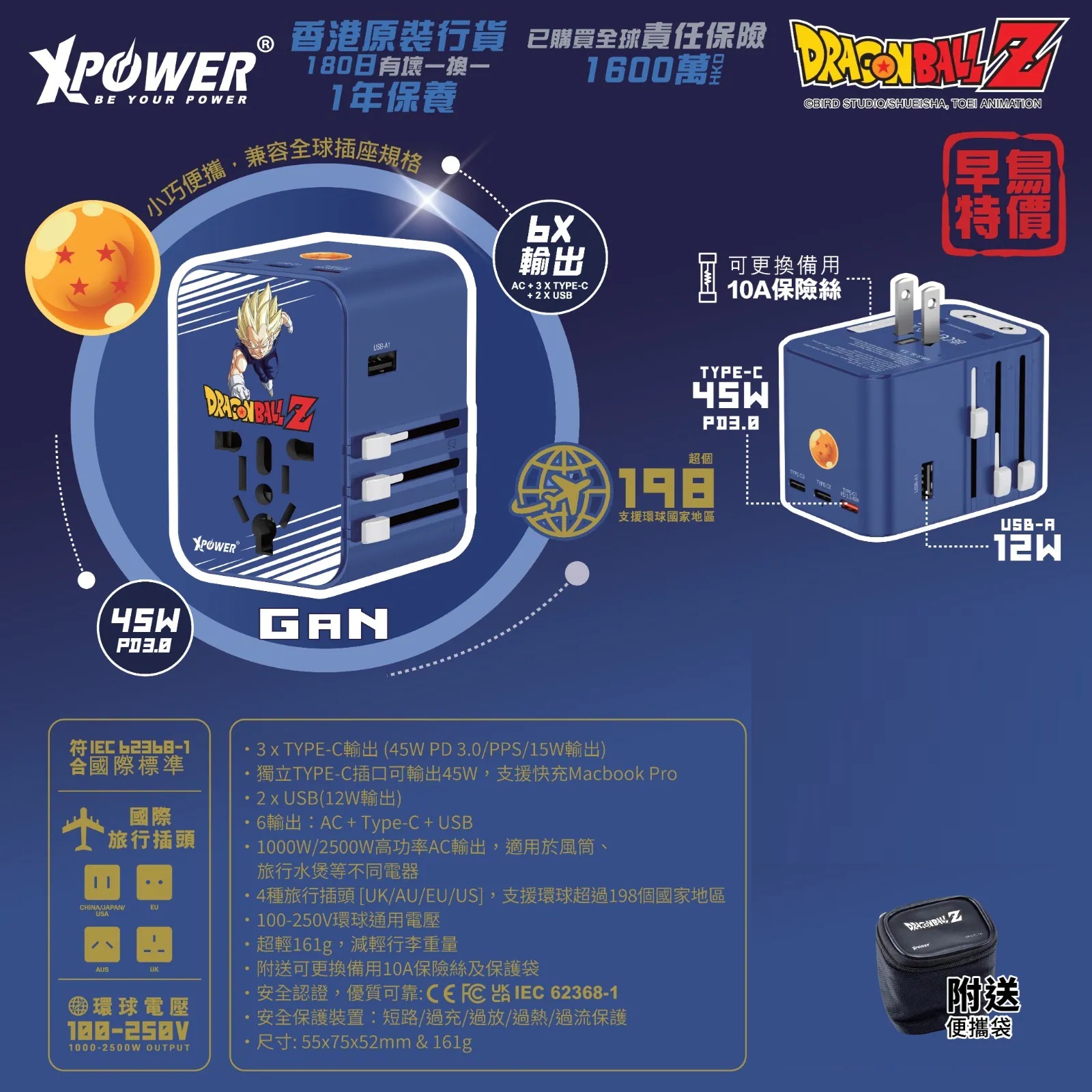 XPower x 龍珠Z TA45B 45W 6輸出 PD3.0/PPS快充旅行充電器 (比達)