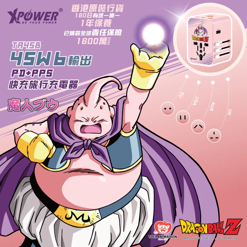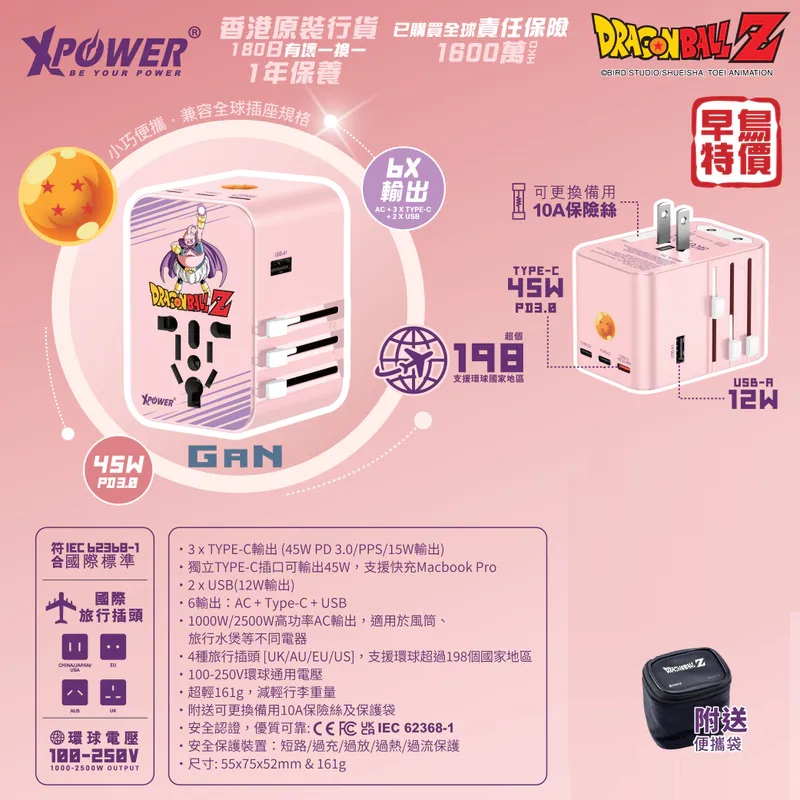 XPower x 龍珠Z TA45B 45W 6輸出 PD3.0/PPS快充旅行充電器 (布歐)