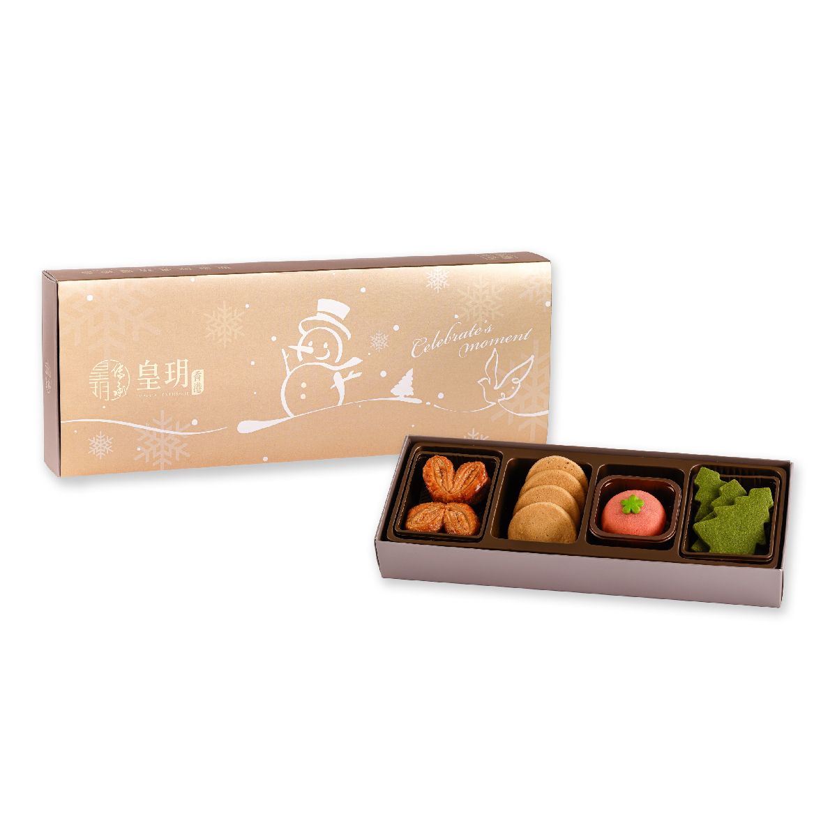 皇玥聖誕經典精選禮盒2025,薈萃原味蝴蝶酥、聖誕節日限定綠茶曲奇、豆沙唐果子及牛油脆曲奇。其中聖誕綠茶曲奇更採用日本藪北綠茶,茶味特濃清香,回甘悠長。這款綜合禮盒是交換禮物的安全牌,更是送給親友的絕佳聖誕禮物。