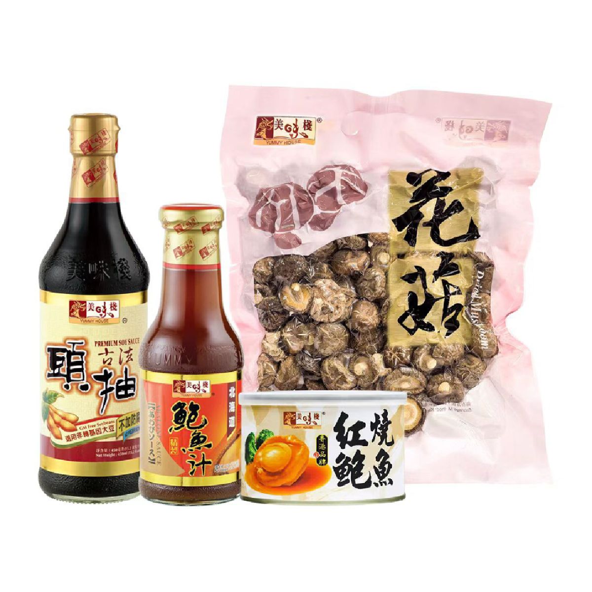 配料︰水、醬油 (水、黃豆、小麥麵粉、食鹽)、白砂糖、鮑魚提取物、食鹽、改性澱粉(粟米澱粉)、干貝、酵母提取物、增味劑(E621、E635)、增稠劑 (E415)、防腐劑 (E202)