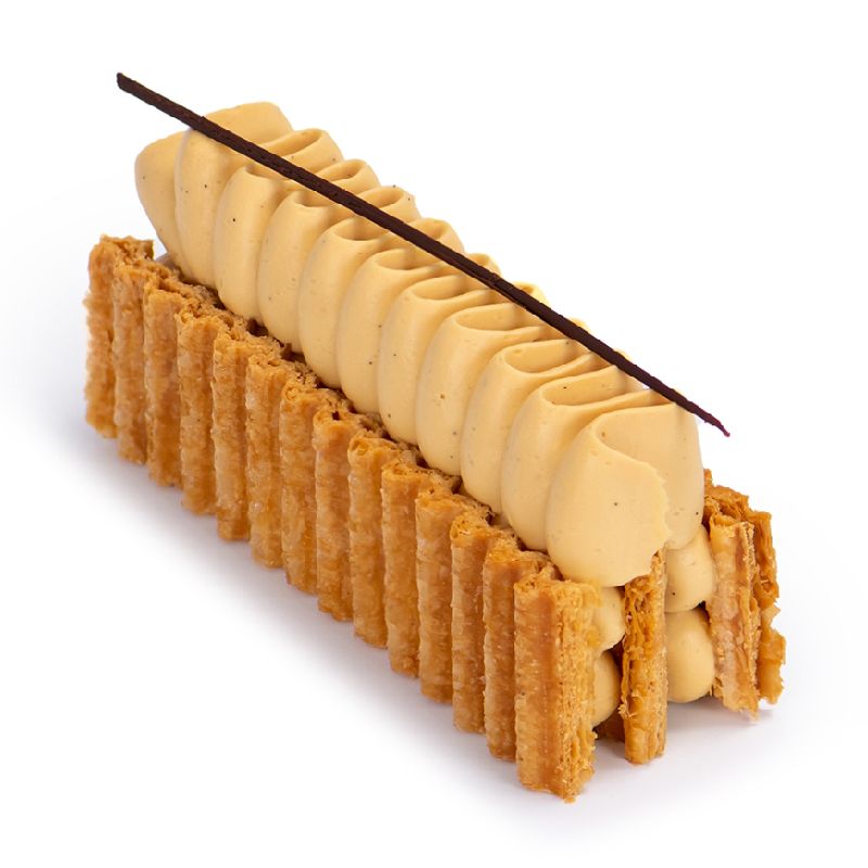 這款非凡的作品打破常規,以層層精緻的焦糖酥皮為特色。裡面是香濃的鹽味焦糖奶油餡,質地和口味完美和諧。準備好被酥皮和天鵝絨般焦糖的完美結合所吸引吧。