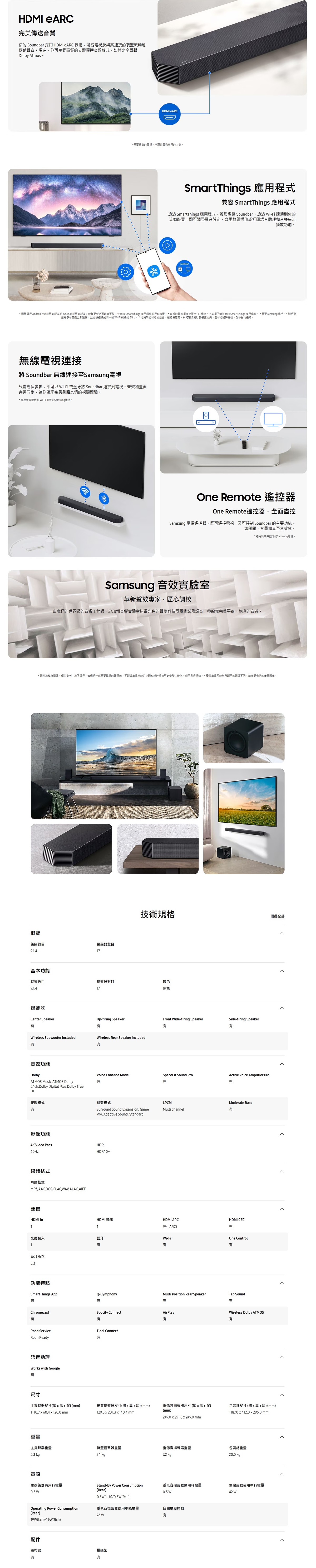 三星 - Q-series Soundbar HW-Q930F 9.1.4 ch 配重低音及後置喇叭 (2025) HW-Q930F/ZK 黑色