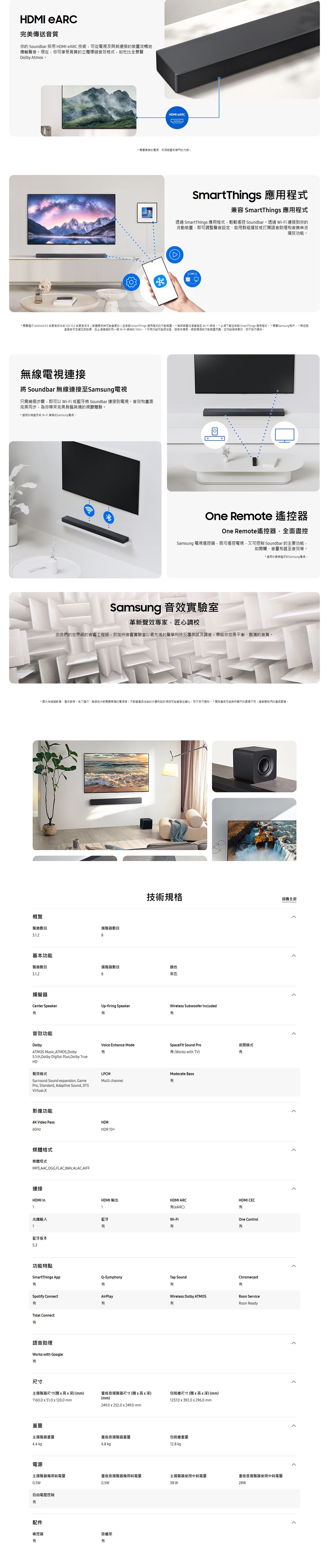 三星 - Q-series Soundbar HW-QS700F 3.1.2 ch 配重低音喇叭 (2025) HW-QS700F/ZK 黑色