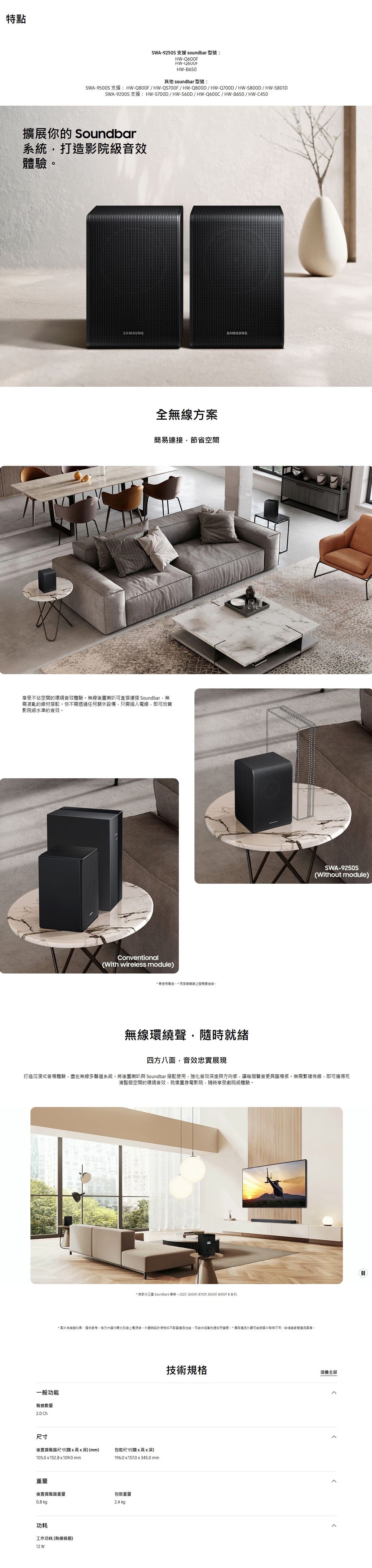 三星 - SWA-9250S 無線後置喇叭 SWA-9250S/ZK 黑色