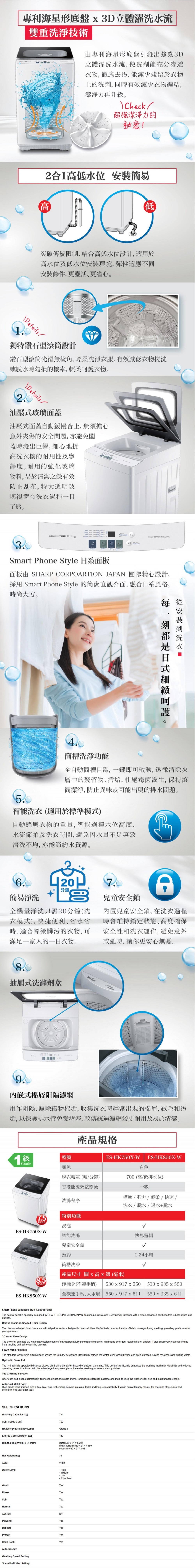 SHARP - 7.5公斤 日式洗衣機 ES-HK750X-W