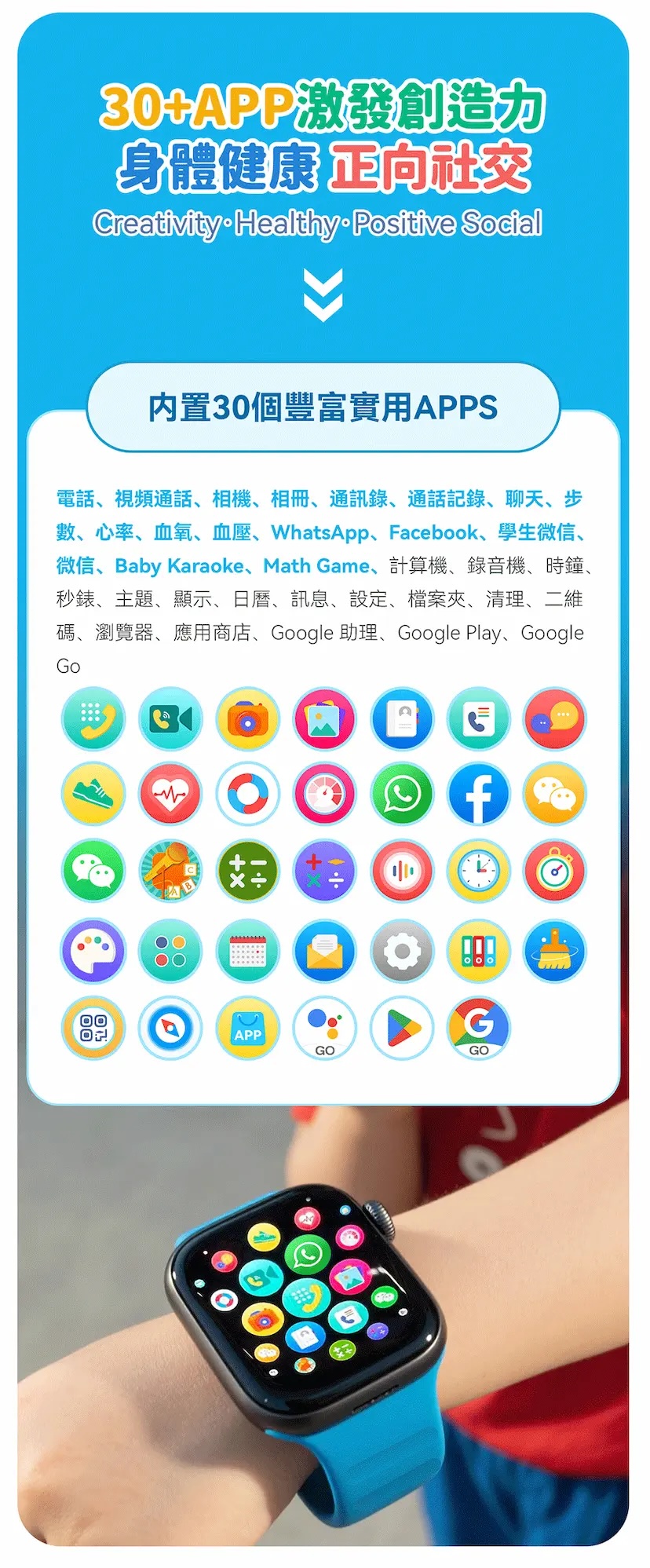 - 顏色:藍色(附贈黑色錶帶*1/藍色錶帶*1)、粉色(附贈白色錶帶*1/粉色錶帶*1)