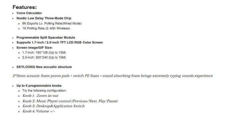 Skyloong - GK104 Pro 無線螢幕機械鍵盤 (多色選擇)