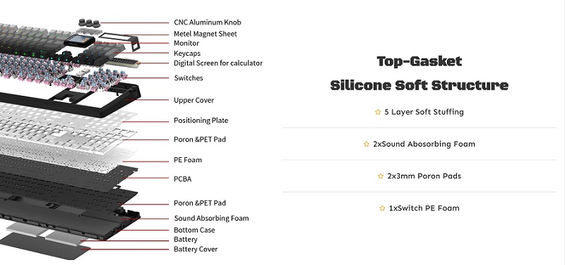 2*3mm吸音海綿墊+開關PE海綿+吸音海綿帶來極致的打字聲音體驗