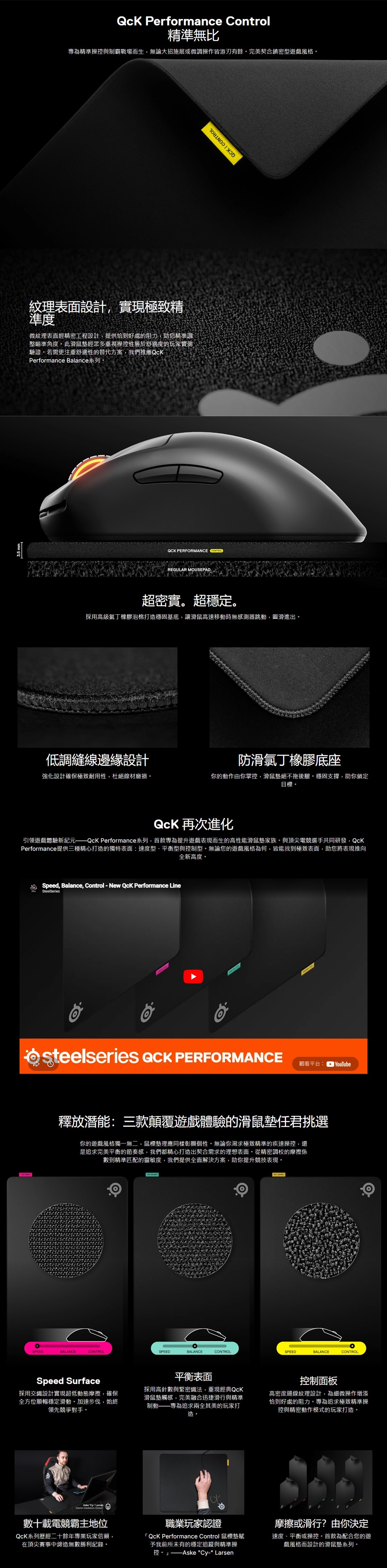 - (QcK Performance Control L) 尺寸︰490 x 420 x 3.5mm (19.3 x 16.5 x 0.13 in)