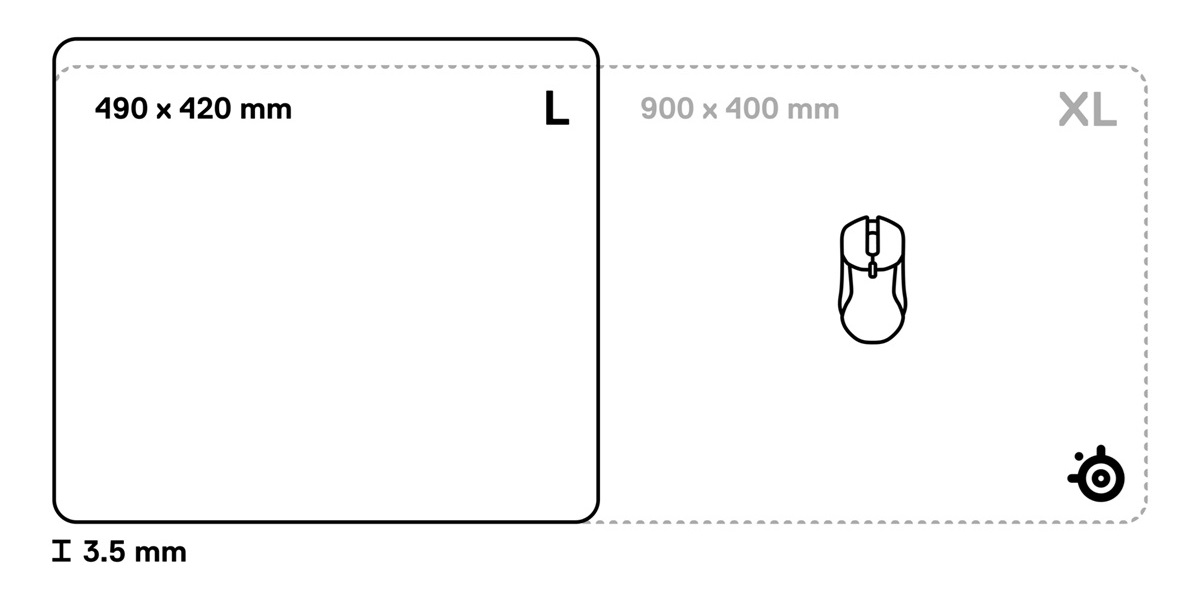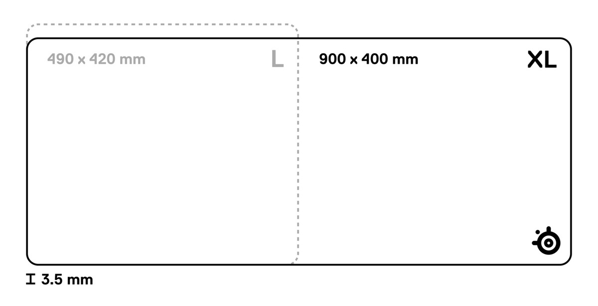 - (QcK Performance Control XL) 尺寸︰900 x 400 x 3.5mm (35.4 x 16.5 x 0.13 in)