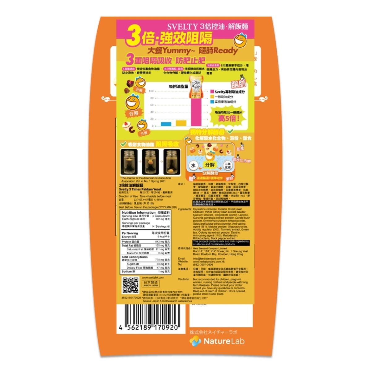 Svelty控油解飯麵透過3重機制,分解致肥醣及碳水化合物,再吸走多餘油脂,讓你可以食得放心! 舌尖大解放!