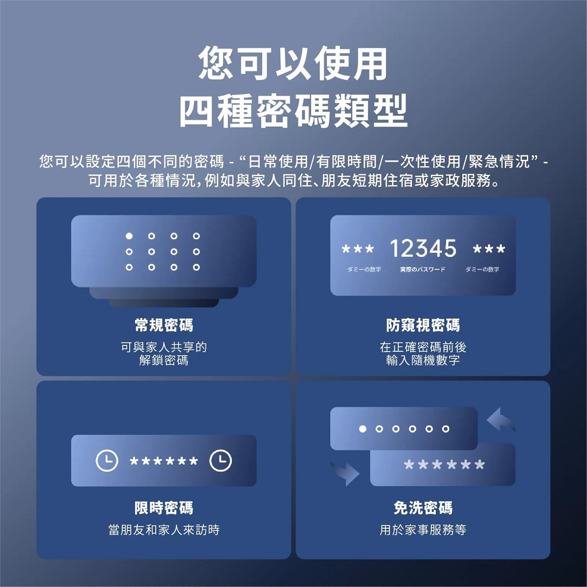 - 9種開鎖方式