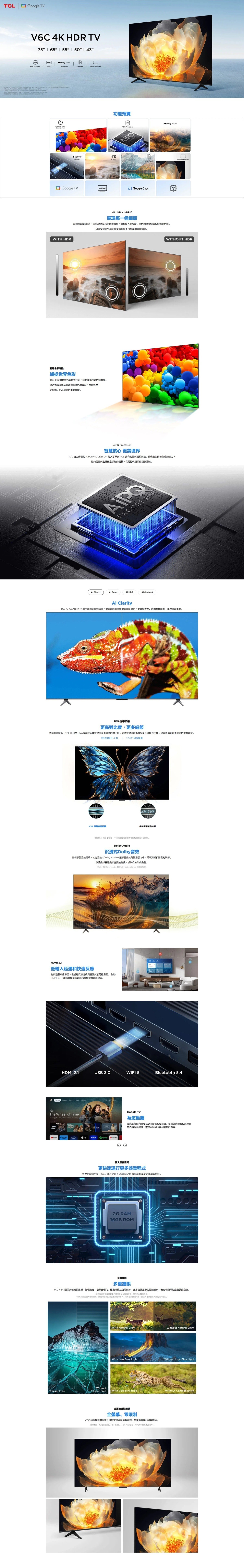 TCL - 50" V6C 4K HDR TV 智能電視 50V6C