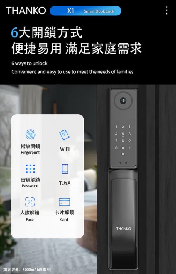 Thanko - X1 人臉識別貓眼鎖|7種基本開鎖方式|包安裝