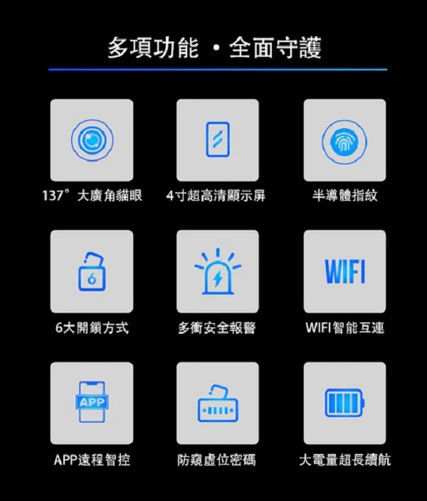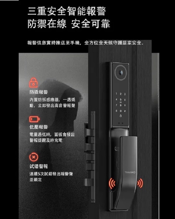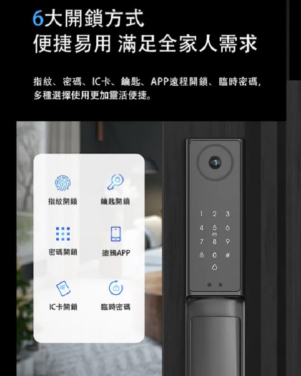 - 。支援雙重認證開鎖 (如指紋+密碼)