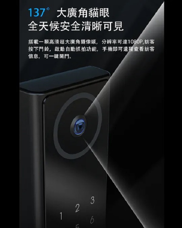 - 137度廣角貓眼鏡頭 自動抓拍功能