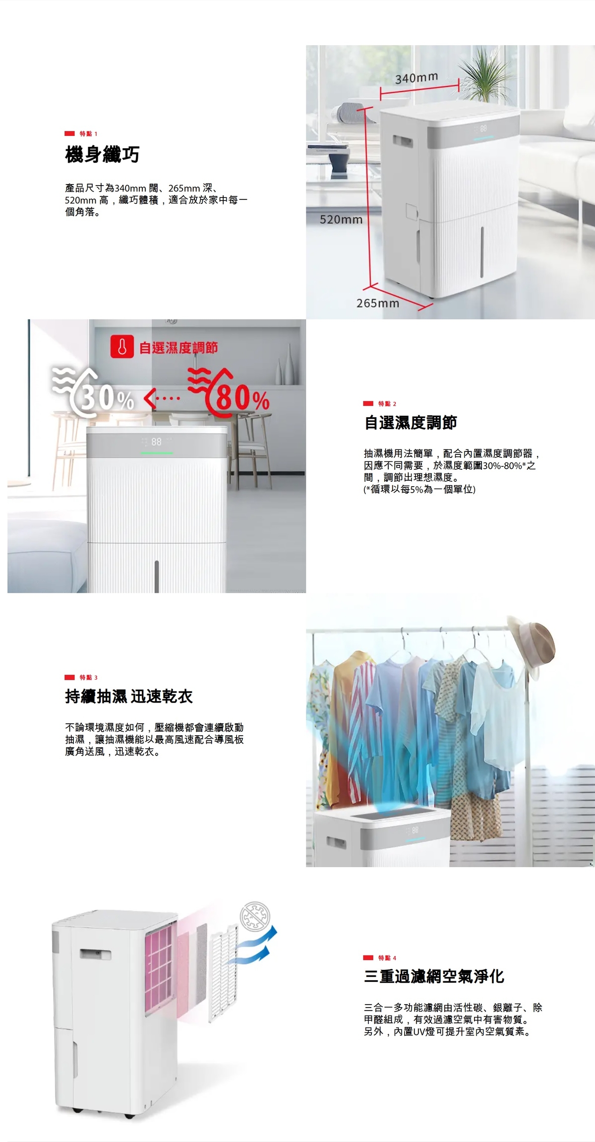- 廠方標準抽濕能力 30公升/日