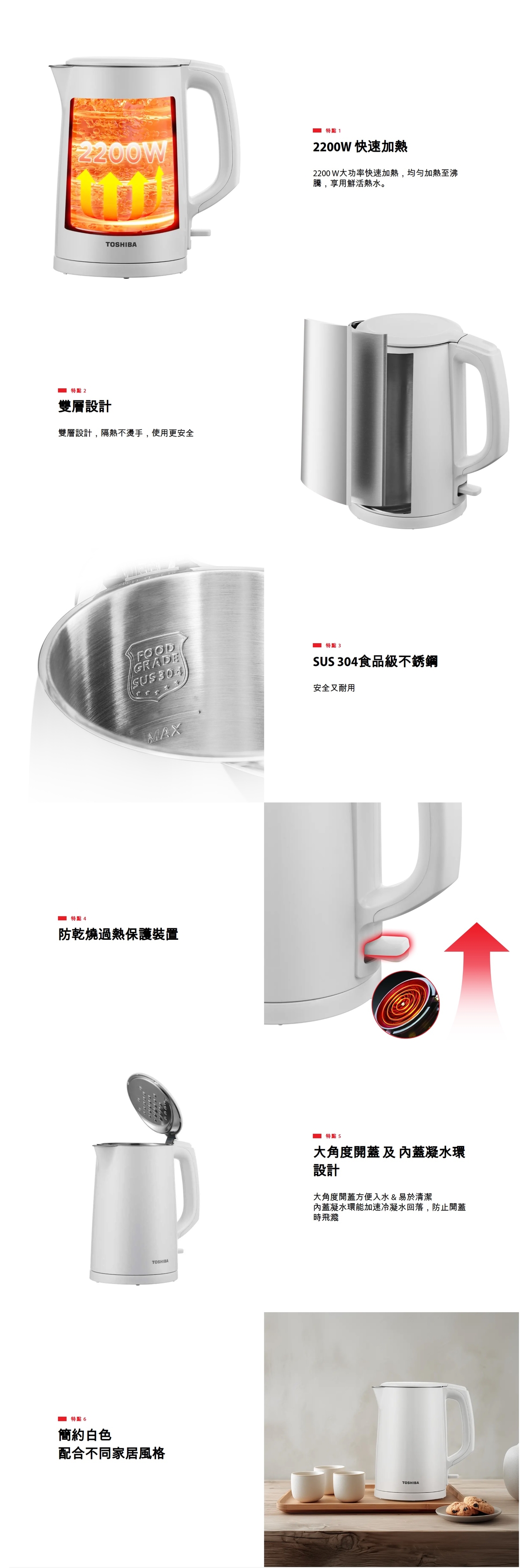 東芝 - 無線雙層電熱水壺(1.4公升) KT-14DHUHK(W)