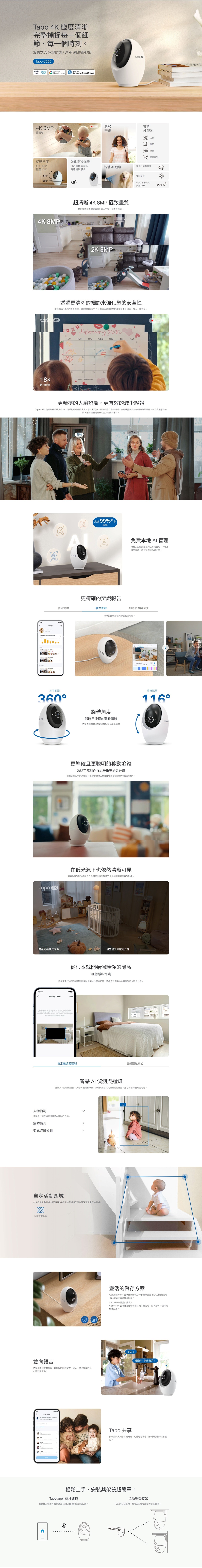 TP-Link - Tapo C260 4K 8MP 旋轉式 AI 家庭防護 / Wi-Fi 網路攝影機 IP Cam