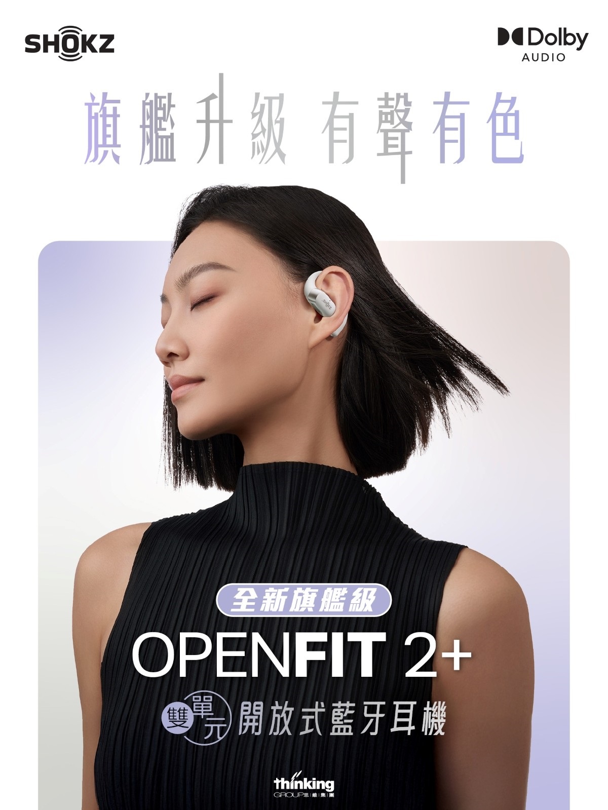 Shokz OpenFit 2+ 新增 Dolby Audio,一鍵開啟即可體驗立體環繞、細節豐富的逼真音效,帶來更寬闊、更沉浸的聆聽感受。