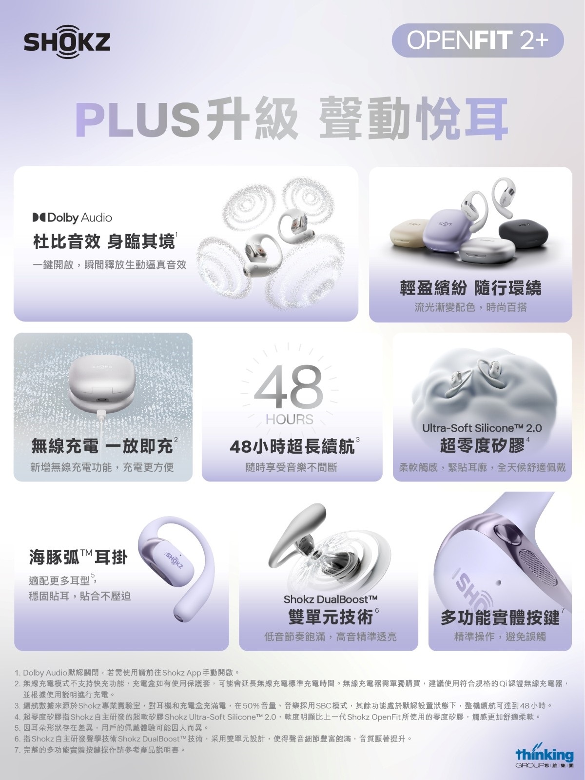 *DolbyAudio 默認關閉,若需使用請前往Shokz App手動開啟。
