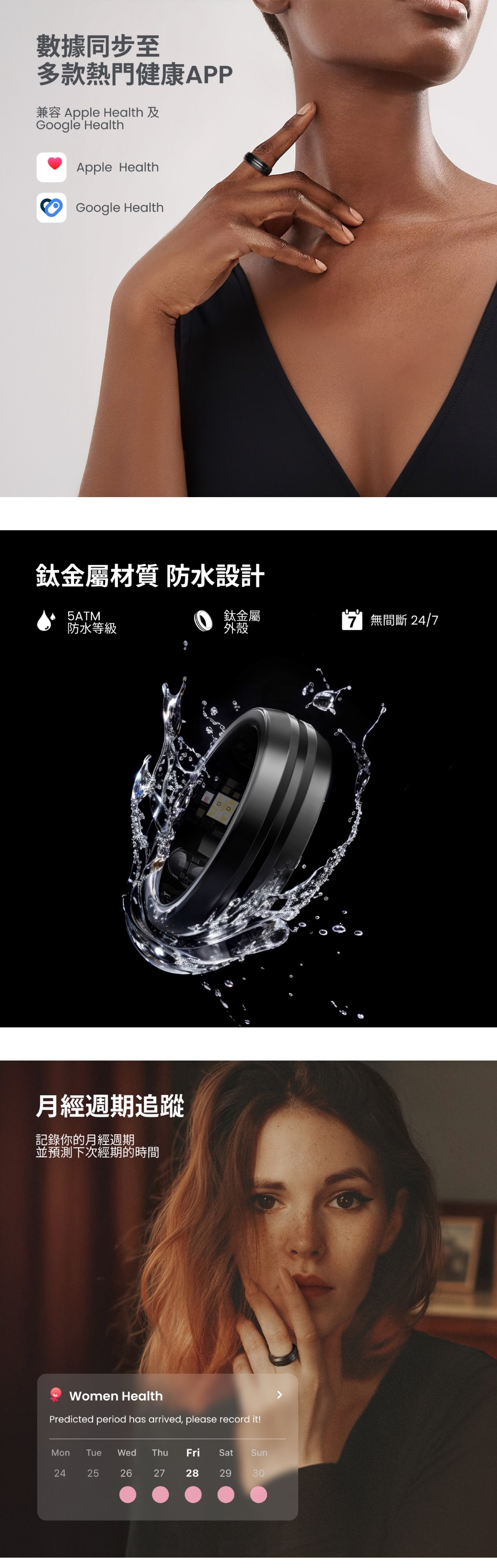 - 月經週期追蹤:幫助女性用家預測月經週期,為懷孕做好準備。