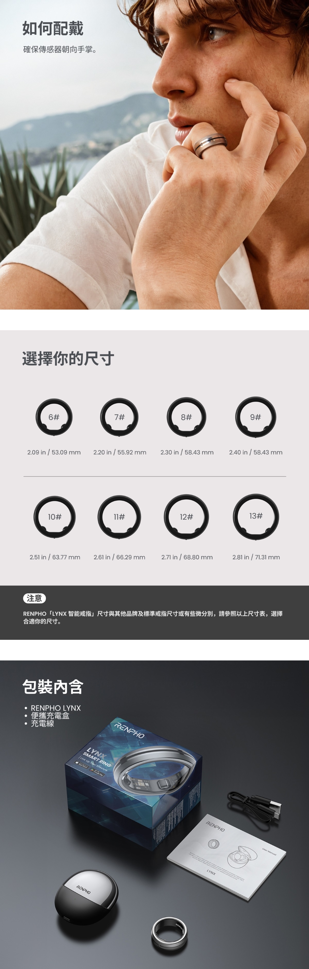 Renpho - LYNX 智能戒指 - 銀色 (尺碼 6 - 13)