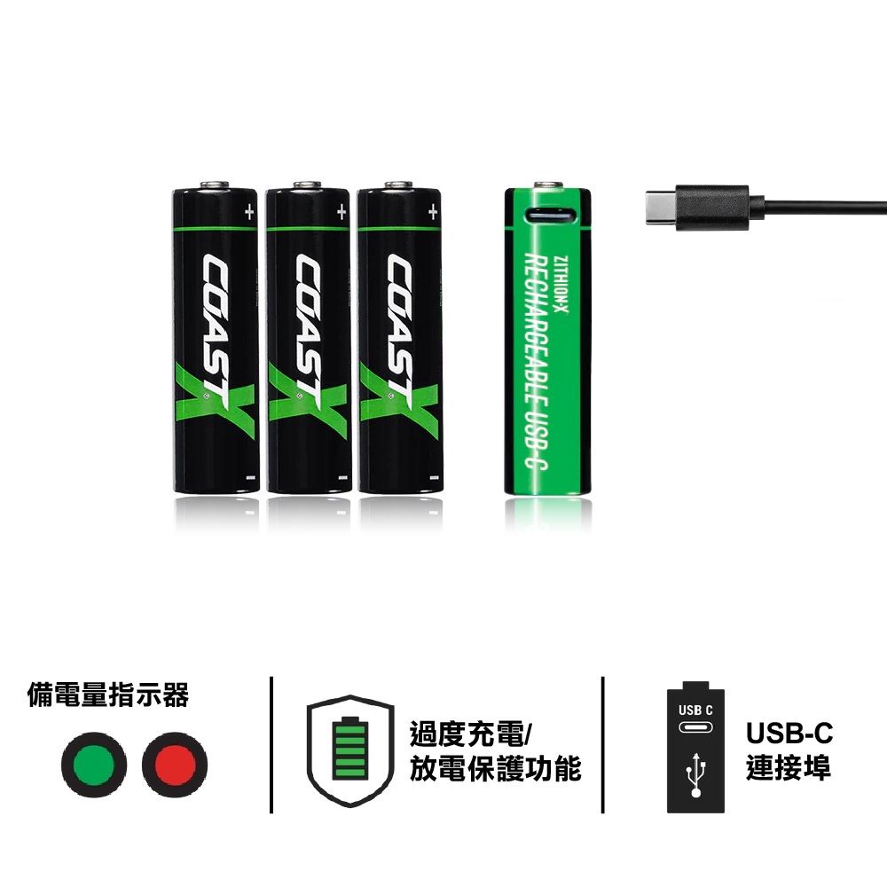 (電子換領券)COAST - USB-C 充電式鋰電池 AA Zithion-X R USB-C Ported Battery GB 4pk
