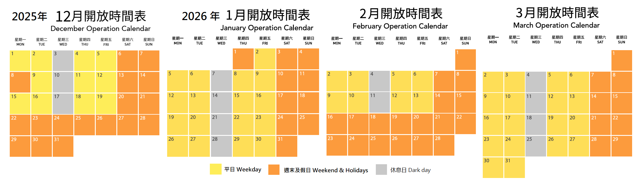 - 開放時段:(平日:星期一至五 / 週末: 星期六,日)11:00 - 19:00