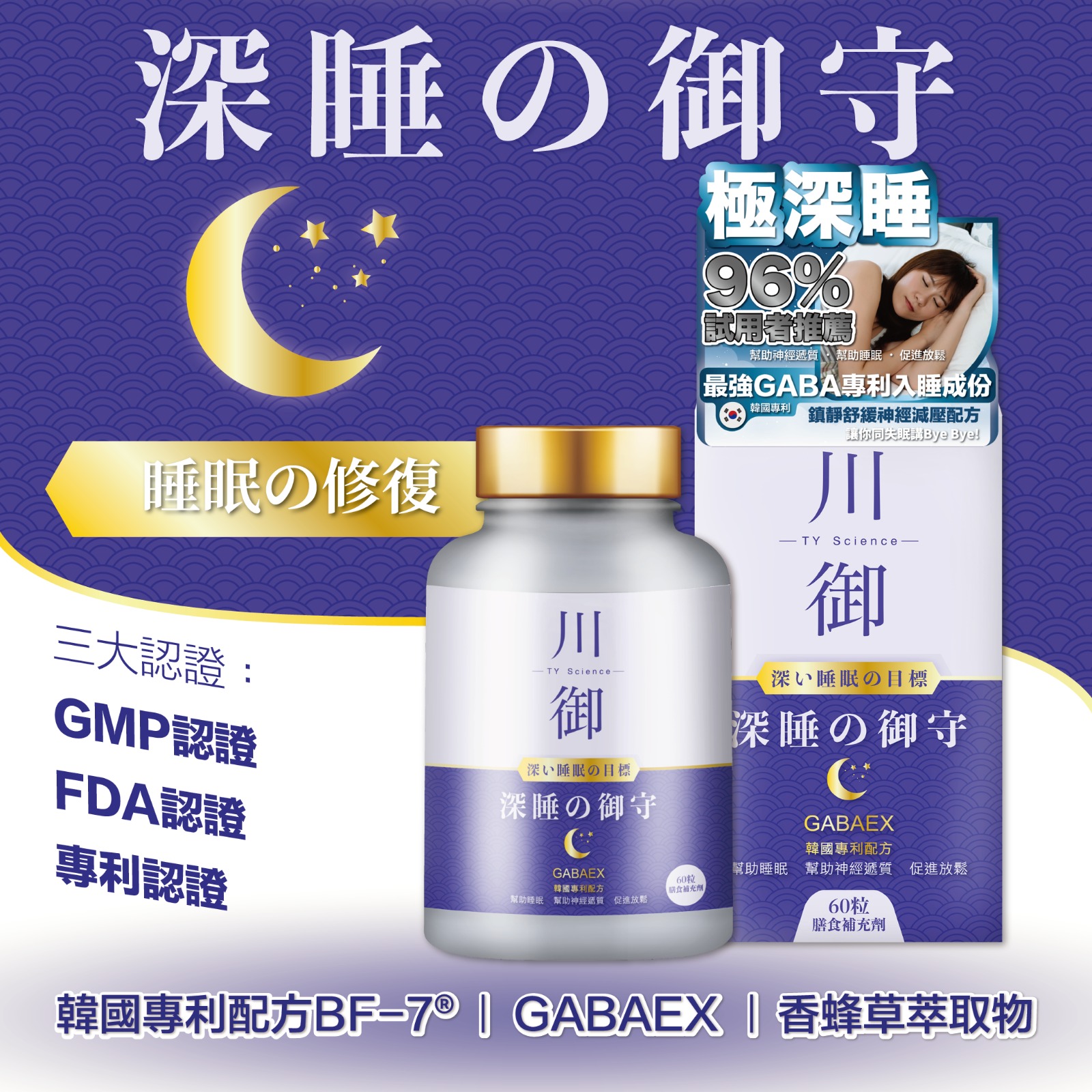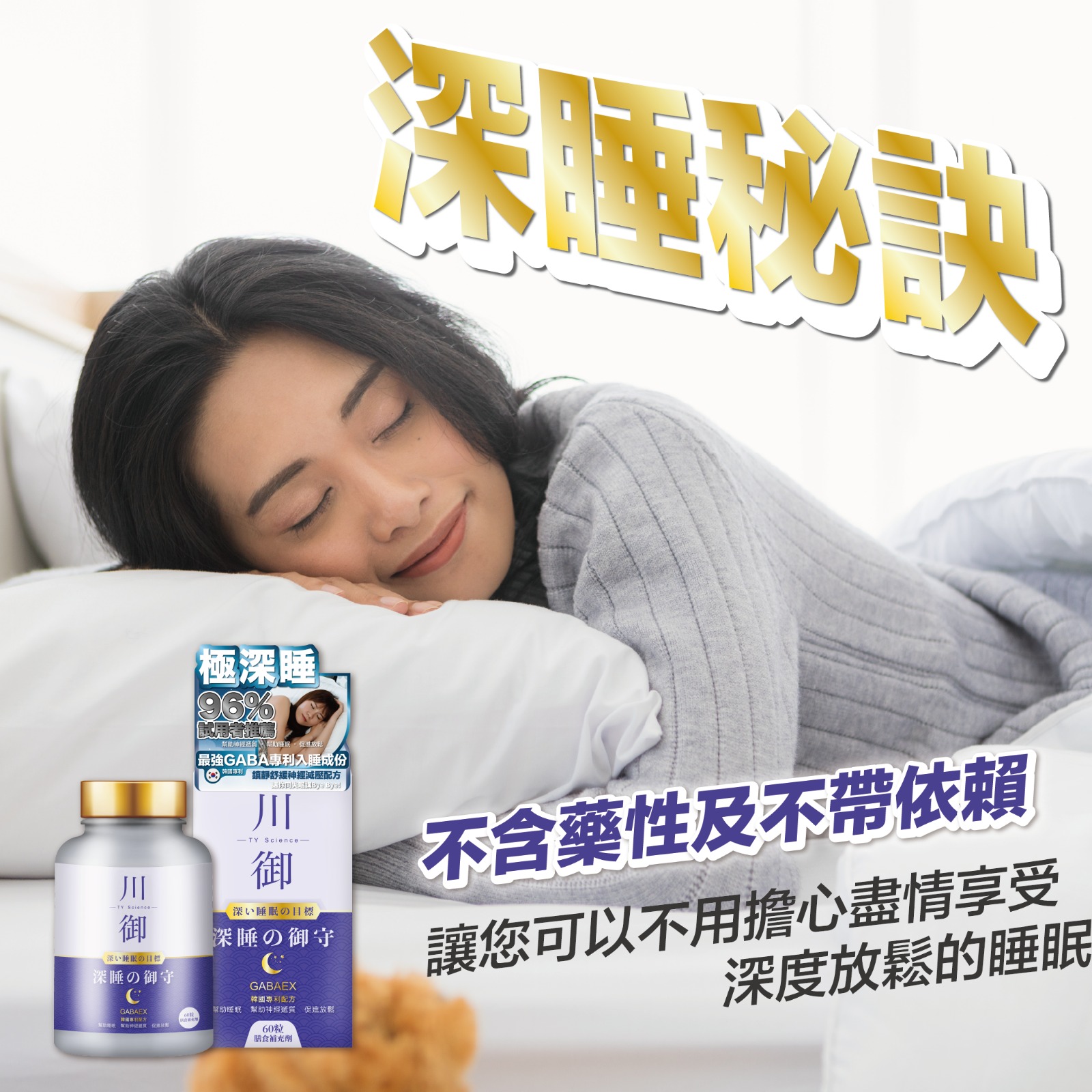 川御深睡の御守是一款科技結合的保健品,專為改善睡眠品質而設。主要成份泡菜乳酸菌發酵物包含GABA,GABA是一種重要的神經遞質,能夠調節神經元的活動,促進放鬆和鎮靜感。利用高品質及高純度GABA配方,能夠縮短入睡時間,增加睡眠時間,減少夜間醒來次數,並改善睡眠的深度和質量。快速減輕焦慮和過度活躍,提供自然、舒暢的睡眠體驗。深睡の御守不含藥性及不帶依賴,讓您可以不用擔心盡情享受深度放鬆的睡眠,恢復精力,保持身心健康。