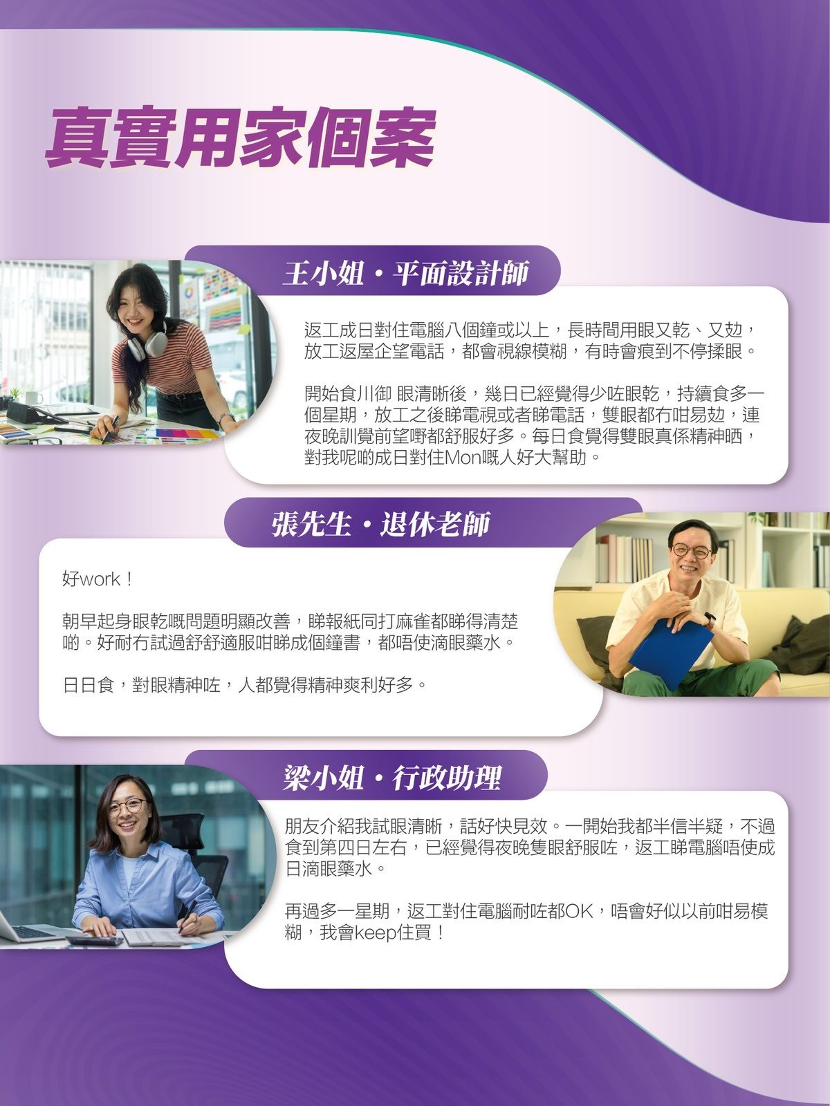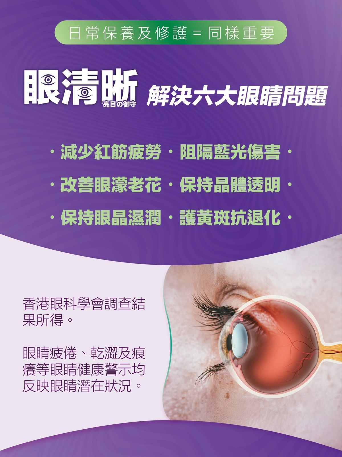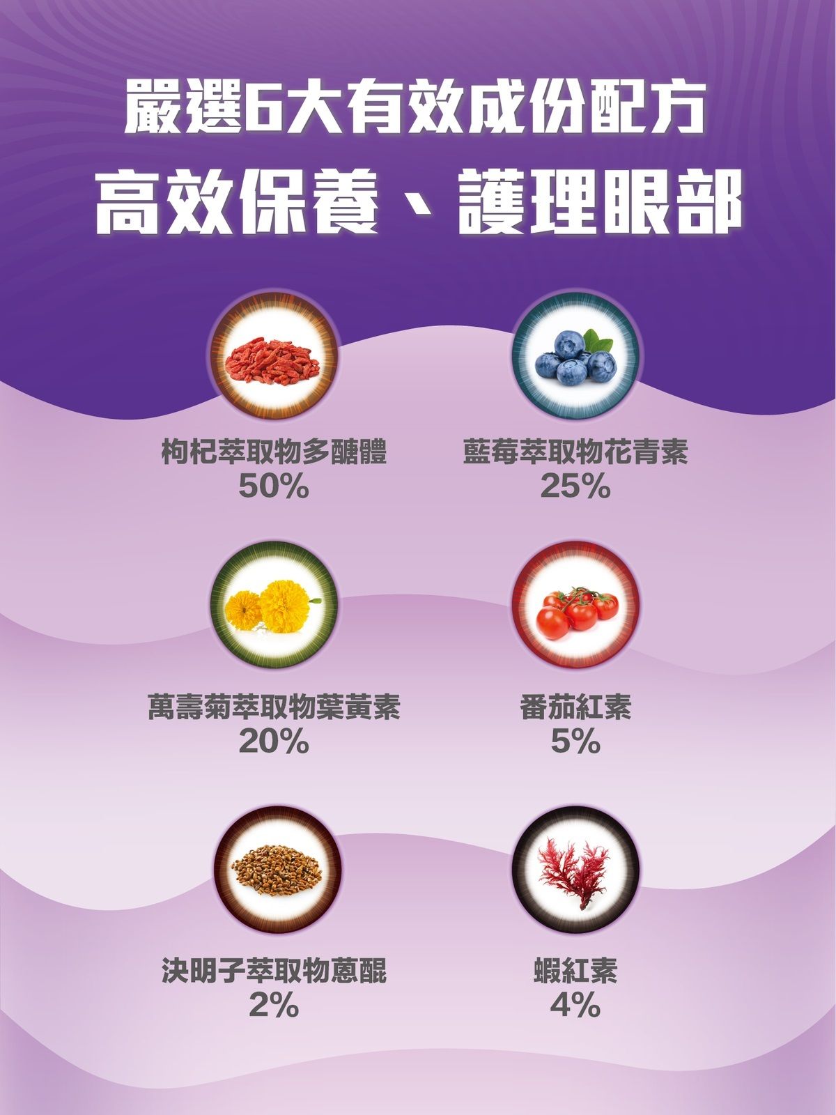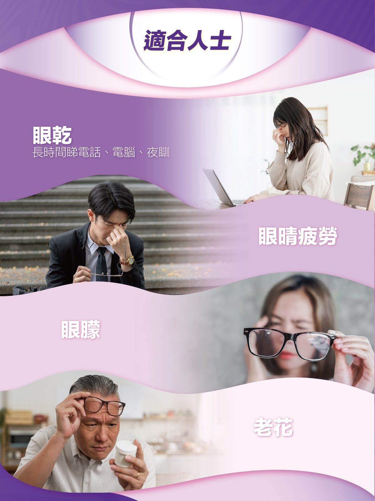 提供全面的眼睛健康支持,減輕視力疲勞、保護視網膜及抵禦自由基損傷