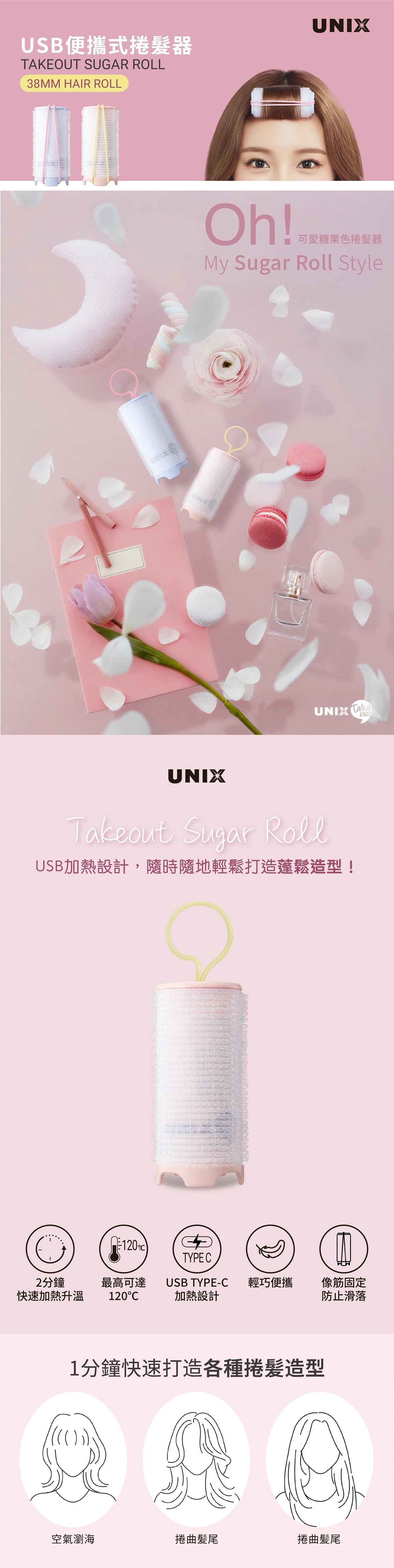 UNIX - USB 便攜式捲髮器 | UN-PW-5638 - 多色選擇