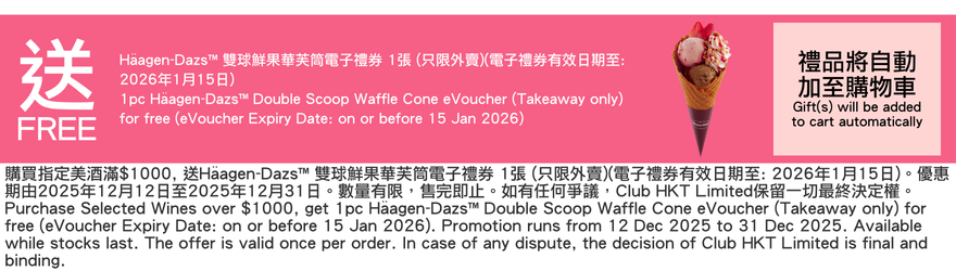 * 不適用於偏遠地區(馬灣 / 東涌 / 愉景灣)預售產品及季節性食品(詳情:物流與配送)
