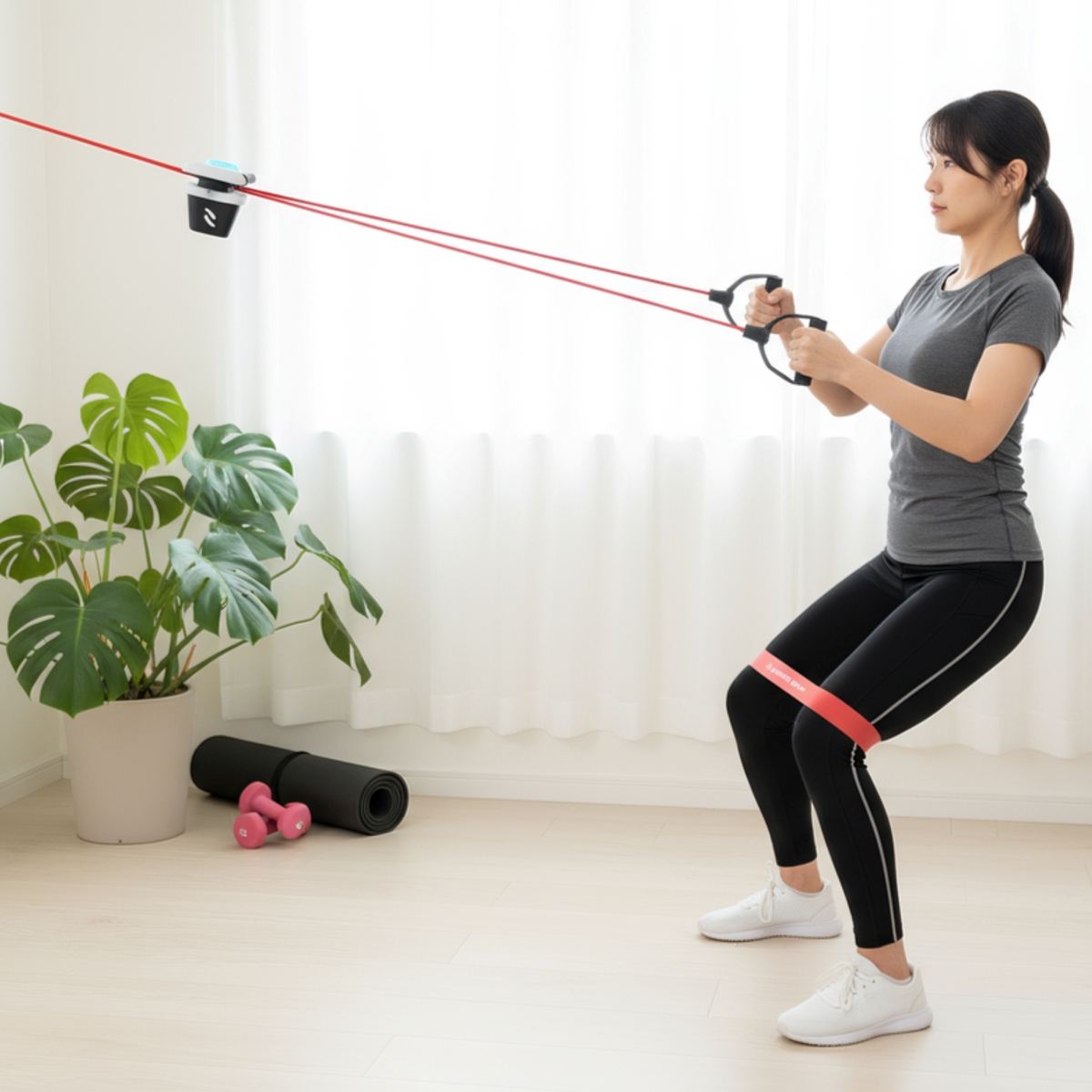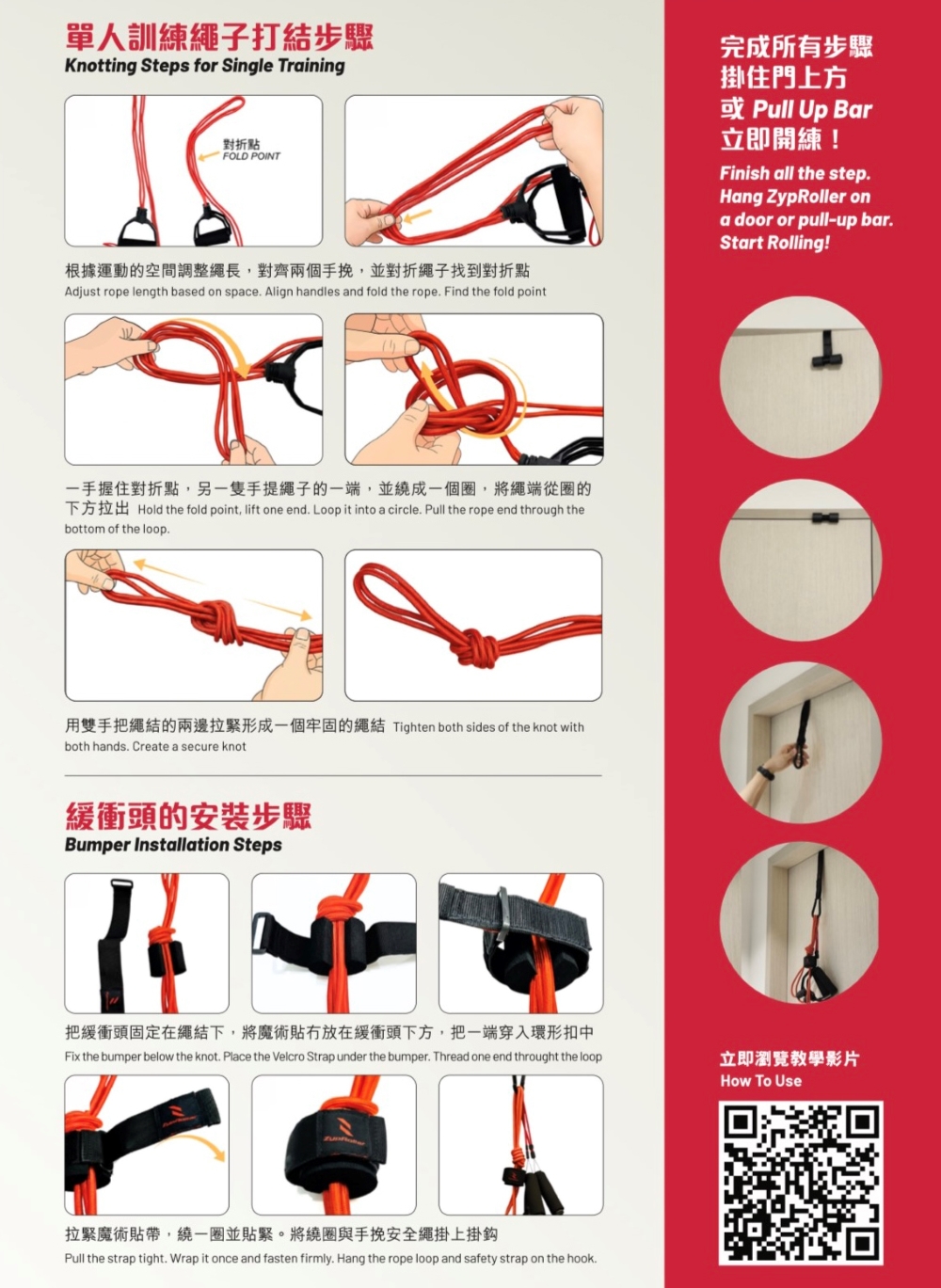 - 將緩衝器繞於繩結前方位置,防止拉力輪直接撞擊繩結,提升耐用性及訓練效果。