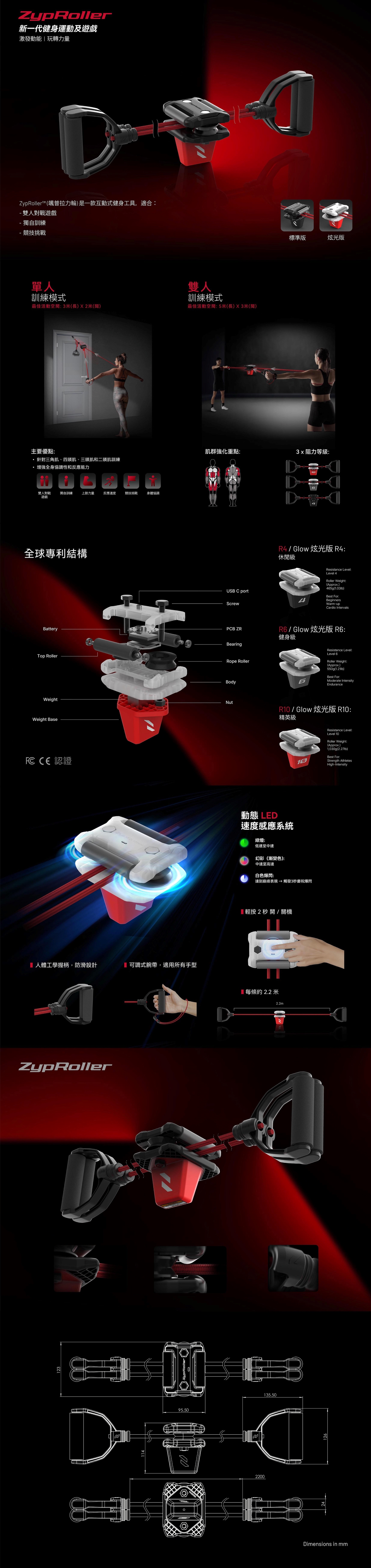 - ZypRoller™ 拉力輪是一款多功能互動式健身工具,專為雙人對戰、個人訓練及小組競賽設計。