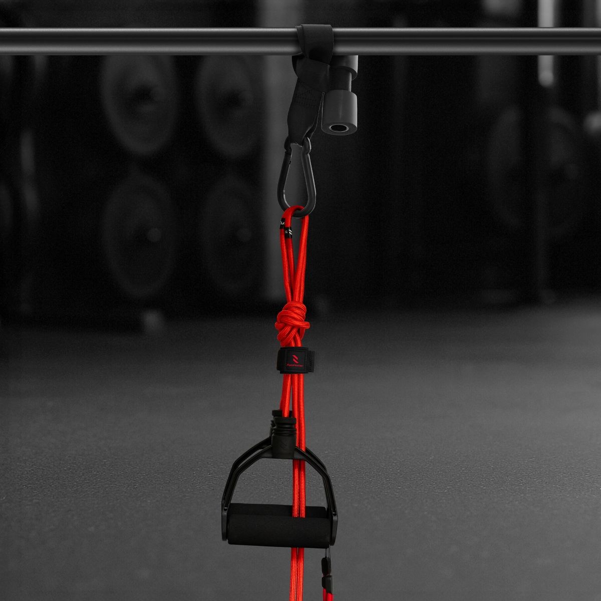 - 將緩衝器繞於繩結前方位置,防止拉力輪直接撞擊繩結,提升耐用性及訓練效果。